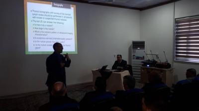 بإشراف وحضور السيد عميد كلية الطب جامعة الموصل الأستاذ الدكتور باسل محمد نذير سعيد، وبحضور السيد مسؤول شعبة الأنف والأذن والحنجرة الأستاذ الدكتور علي عبدالمطب محمد (المشرف على دراسة البورد العراقي في الموصل)، أقامَتْ الشعبةُ الاجتماعَ الثاني لنادي المجلة، وذلك يوم الاثنين 31 كانون الأول 2018 في رحاب القاعة العلمية. قُدِّمَت في الاجتماع حالتان مَرَضِيَّتانِ اثنتان: الحالة الأولى قدّمها الأستاذ المساعد الدكتور خلف رشيد اللويزي، وهي: Solitary Thyroid Nodule، والحالة الثانية قدّمها الدكتور سنان أحمد العلي (طالب البورد العراقي)، وهي: Journal Club.وقدْ أدار هذا الاجتماعَ السيدُ عميد الكلية الأستاذ الدكتور باسل محمد نذير سعيد، وبمقررية الأستاذ المساعد الدكتور هيثم عبدالملك النوري. هذا، وكان من بين الحضور طلبة البورد العراقي والعربي، فضلاً عن تدريسيي فرع الجراحة كلية الطب جامعة الموصل.