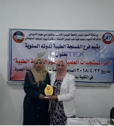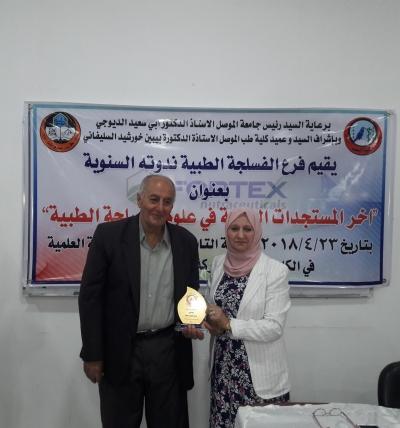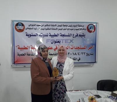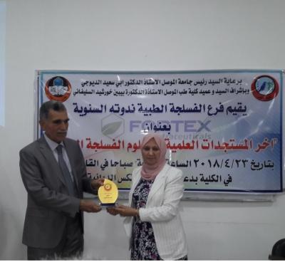 تحت شعار: "بالعلم نبني ونرتقي"، وبرعاية السيد رئيس جامعة الموصل الأستاذ الدكتور أبي سعيد الديوه جي، وبإشراف وحضور عميد كلية الطب جامعة الموصل الأستاذ الدكتورة بيبين خورشيد السليفاني، أقامَ فرع الفسلجة الطبية كلية الطب جامعة الموصل ندوته العلمية الموسومة: "آخر المستجدات العلمية في علوم الفسلجة الطبية"، وذلك يوم الاثنين 23 نيسان 2018 في القاعة العلمية لمبنى الفروع السريرية كلية طب نينوى. اُسْتُهلت الندوة التي أدارها مسؤول شعبة الإعلام والعلاقات العامة في كلية الطب جامعة الموصل المهندس حسن يونس عبدالله بكلمة مشرفة الندوة الأستاذ الدكتورة بيبين خورشيد السليفاني، حيث أكدتْ على أهمية هذا الحِراك العلمي الطبي من خلال ديمومة هذه الندوات التي تقوم بها فروع الكلية، مؤكدةً شكرها وتقديرها للسَّادةِ الباحثينَ لـمُـشاركتِهِم، وإغناء النَّدْوةِ ببحوثِهم القيمة. بعد ذلك، ألقتْ مقررة الفرع الدكتورة رجاء أحمد يونس كلمة اللجنة التحضيرية للندوة، أعربت فيها عن اعتزازها وامتنانها للأساتذة الفضلاء ممّن كان لهم بصمة مضيئة ومشرقة لكلية الطب عموماً ولفرع الفسلجة خصوصاً. بعدها تمّ توزيع دروع التميز والعطاء إلى رواد وأساتذة فرع الفسلجة السابقين، وهم كل من: الدكتور عبدالخالق الملاح، والدكتور حازم الحبيب، والدكتورة فضيلة الدوسكي، والدكتورة عاصمة الإمام، والدكتور شاكر المختار وزّعتها عليهم الأستاذ الدكتورة بيبينن خورشيد السليفاني. بعد ذلك، ابتدأت أعمال الجلسة العلمية الأولى التي تألفتْ من محاضرتين اثنتين، حيث ترأسها الدكتور حازم الحبيب. أول المتحدثين هو الأستاذ المساعد الدكتور شاكر المختار ومحاضرته الموسومة: Glycated Hemoglobinآخر المستجدات عن الهيموجلوبين. بعده، قدّمتْ المدرس الدكتورة جنان عبدالرزاق محاضرتها الموسومة: Advanced Diagnostic Tests in Cardio-Pulmonary Systemأحدث الفحوصات التشخيصية لجهازيّ الدوران والتنفسي. وبعد استراحة قصيرة، ابتدأت أعمال الجلسة العلمية الثانية، والتي تألفتْ من محاضرتين اثنتين أيضاً، حيث ترأستها الدكتورة ساجدة الجلبي. أول المتحدثين هو المدرس الدكتور محمد عيسى السبعاوي، ومحاضرته الموسومة: Uric Acid: Its Oxidant & Anti Oxidant Physiological Role"حامض اليورك وتأثيراته الفسلجية كمؤكسد ومضاد للأكسدة. ثم مسك الختام مع المدرس الدكتور هاشم الجواري ومحاضرته الموسومة: Medical Dingnostic Developments From X-Ray to MRIالتطورات التشخيصية من الأشعة السينية إلى الرنين المغناطيسي. وكان عقب انتهاء كل جلسة علمية، يفُتحَ باب المداخلات والمناقشات والأسئلة من قبل السادة الحاضرين التي أغنت المواضيع من جوانبها كافة. وكانممن حَضَرَ هذه الندوة أيضاً السيد معاون العميد للشؤون العلمية الأستاذ الدكتور باسل محمد نذير سعيد، والسيد معاون العميد للشؤون الإدارية الأستاذ المساعد الدكتور حازم خليل العلاف، فضلاً عن جمع غفير من تدريسيي كلية الطب في جامعتي الموصل ونينوى. جديرٌ بالذكر أن هذه الندوة أُقيمت بالتعاون مع شركة فورتكس الدوائية.