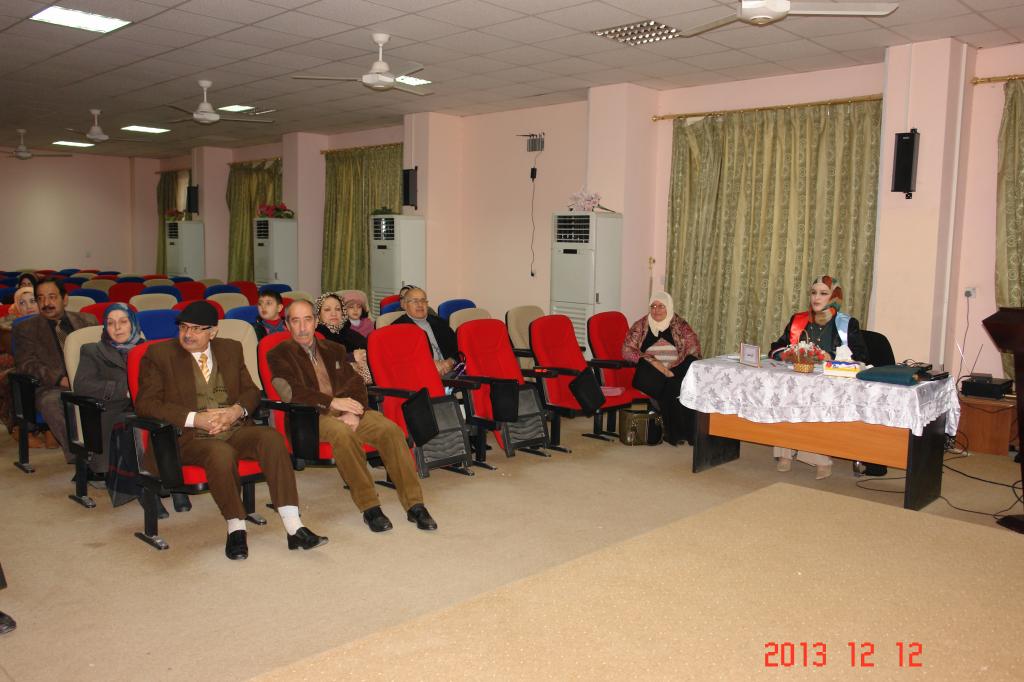 تمت مناقشة رسالة طالبة الماجستير وسن وعد الله عزيز من فرع التشريح في كلية الطب والموسومة تاثير عقار الدوكسوروبيسين على التركيب النسيجي للكلية في ذكور الجرذان (بوجود وعدم وجود عقار ل-كارنيتين) وذلك يوم الخميس 12 كانون الاول 2013 من قبلا.د. سميرة عبد الحسين عبد الله د. اخلاص احمد عليد. ميسون محي الدين القزاز د. مها عبد الجبار السماكتهانينا والف مبروك