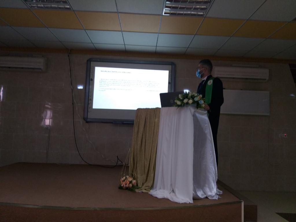 بحضور مسؤول مركز الموصل التدريبي الطبيب الاستشاري الدكتور رافع حازم القزاز، جرت مناقشتان لطالبين اثنين من طلاب البورد العربي المرحلة الرابعة لعلم الامراض، وذلك يوم الأربعاء 25 تشرين الثاني 2020. ففي اليوم المذكور، تمّت مناقشة الطالب محمود خالد محمود عن بحثه الموسوم: The influence of multi-sectioning on axillary lymph nodes status in breast carcinoma. وتألفت لجنة المناقشة من الأستاذ الدكتورة وحدة محمد طيب (رئيساً)، والأستاذ المساعد الدكتور خلف رشيد اللويزي (عضواً)، والأستاذ المساعد الدكتورة ندوى صبحي العزو (عضواً)، والدكتور الاستشاري حاتم عبدالمجيد النعيمي (مشرفاً).