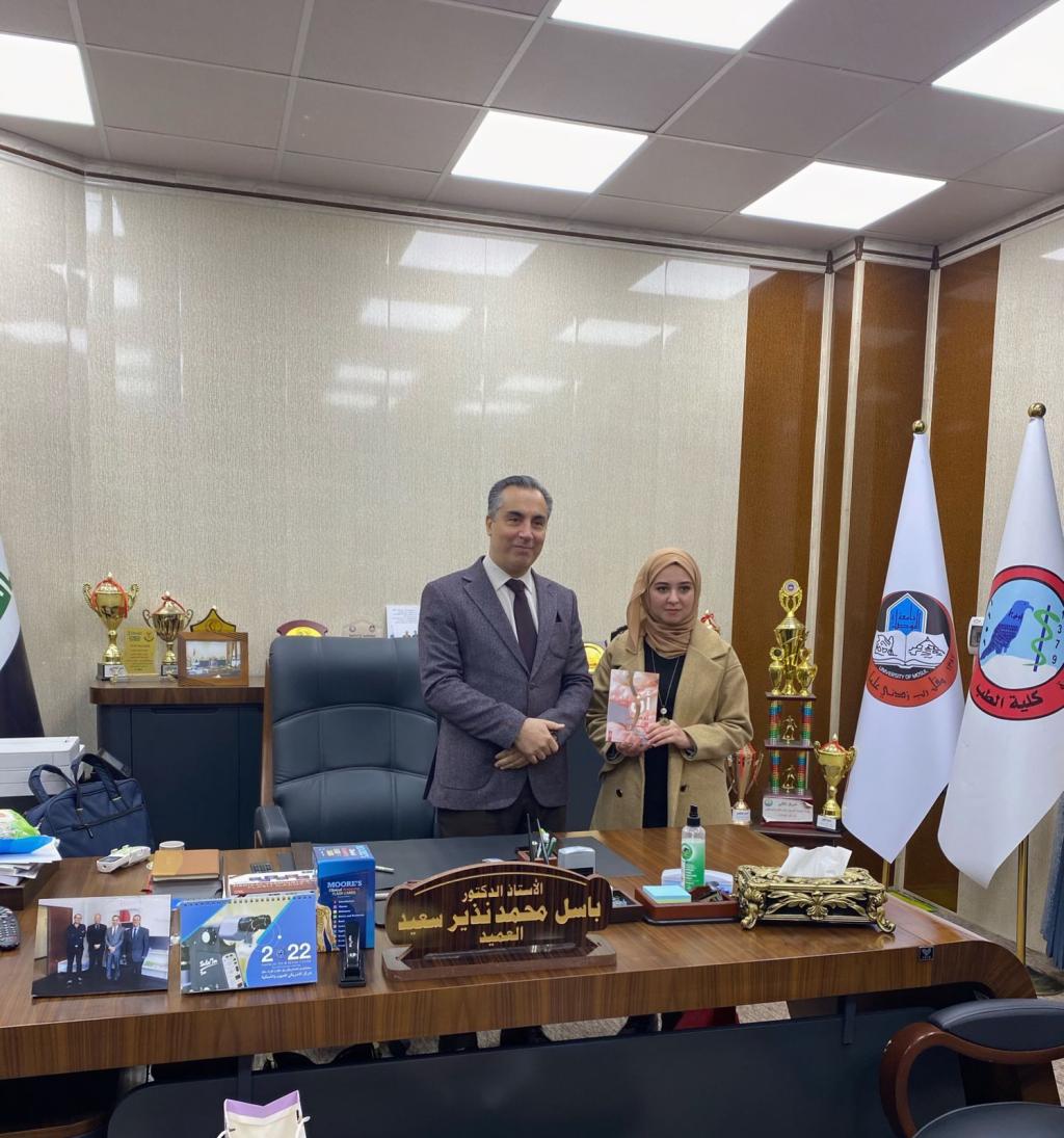 تميز وتألق طلاب كلية الطب يتمثل هذه المرة بصورة جديدة…(أن تُدمن الورد) هي رواية غموض بوليسية تدور احداثها بين مستشفيات بغداد و شوارع باريس، ابطالها مجموعة من الاطباء يبحثون فيها عن طرف خيط لحل احدى اغرب القضايا الغامضة..اهدت طالبة المرحلة الرابعةاشرقت فاضل ظاهر النصراوينسخة انيقة من روايتها الجديدة الى السيد عميد كلية الطب الاستاذ الدكتور باسل محمد نذير سعيد عرفانا” منها وتثمينا” لجهوده الدائمة في دعم نشاطات الطلاب المنوعة ومواهبهم المميزة