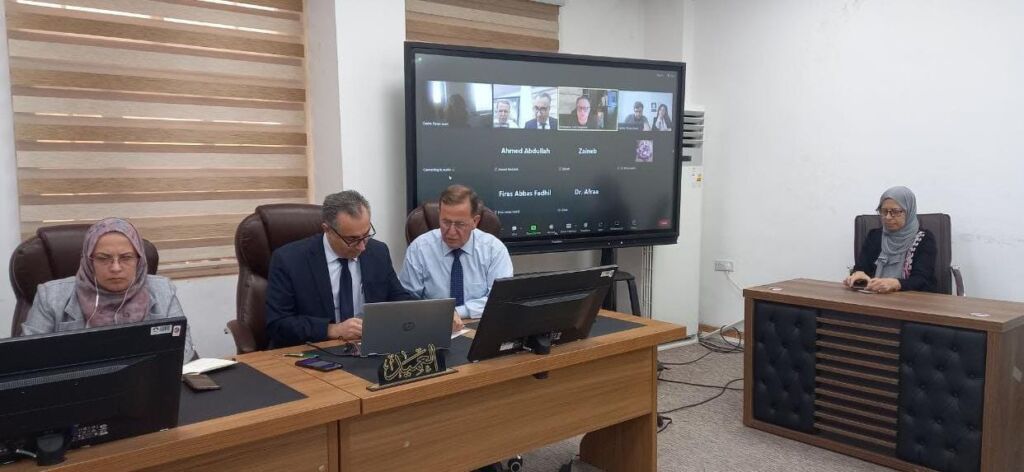 عقد عميد كلية الطب الاستاذ الدكتور باسل محمد نذير سعيد اجتماعا الكترونيا يوم الثلاثاء الموافق ١ / ١٠ /٢٠٢٤ مع الجانب الفرنسي كل من (EF,CDE,APIS) وقد حضر الاجتماع اعضاء مجلس الادارة المشتركة والدكتور وليد محمد بشير السبع عضو الارتباط وعضو اللجنة الفنية في المراكز البحثية لمناقشة مراحل تنفيذ المنحة الفرنسية لتأهيل مشروع المراكز الطبية البحثية والعلاجية من اجل الارتقاء الى مستوى اعلى في تقديم الخدمات الطبية لاهلنا في الموصل