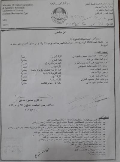 اختيار تدريسية من فرع التشريح كلية الطب جامعة الموصل لتكون عضواً في لجنة كفالة اليتيم في جامعة الموصل