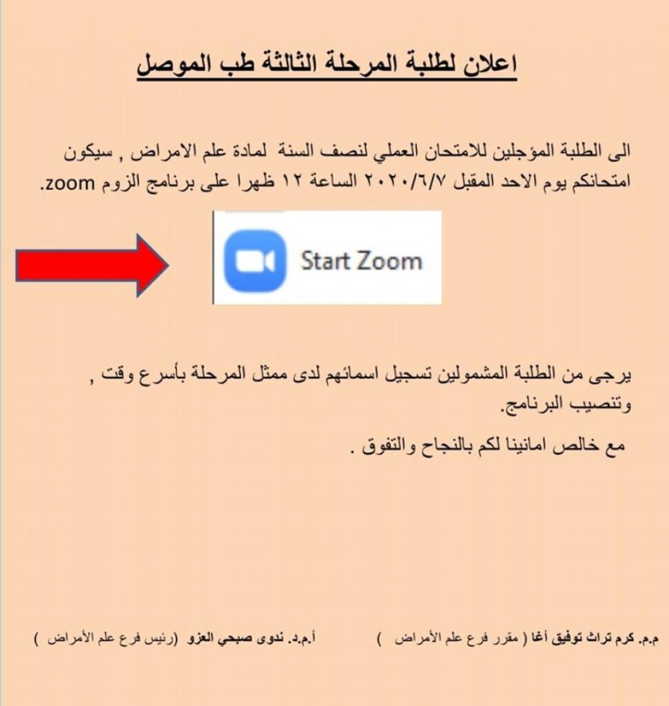 يستمر فرع علم الأمراض كلية الطب جامعة الموصل بإقامة السيمنارات الطلابية للمرحلة الثالثة عبر تطبيق كوكل كلاس رووم. ففي يوم الاثنين 1 حزيران 2020، تم تقديم سيمنارين طلابيينِ اثنين. حيث قدّمت الطالبات أماني حميدان، وإسراء عبد المنعم، وإسراء ياسين، وزينب علي السيمنار الثامن والعشرين، والموسوم Colonic Polyps. وبعد عدة ساعات، قدّمت الطالبتان سؤدد عبدالمنعم، وشدن غالب السيمنار التاسع والعشرين، والموسوم: Chronic Gastritis. وقد اشرفت على كِلا السيمنارين المدرس الدكتورة زهراء مروان شعبان.