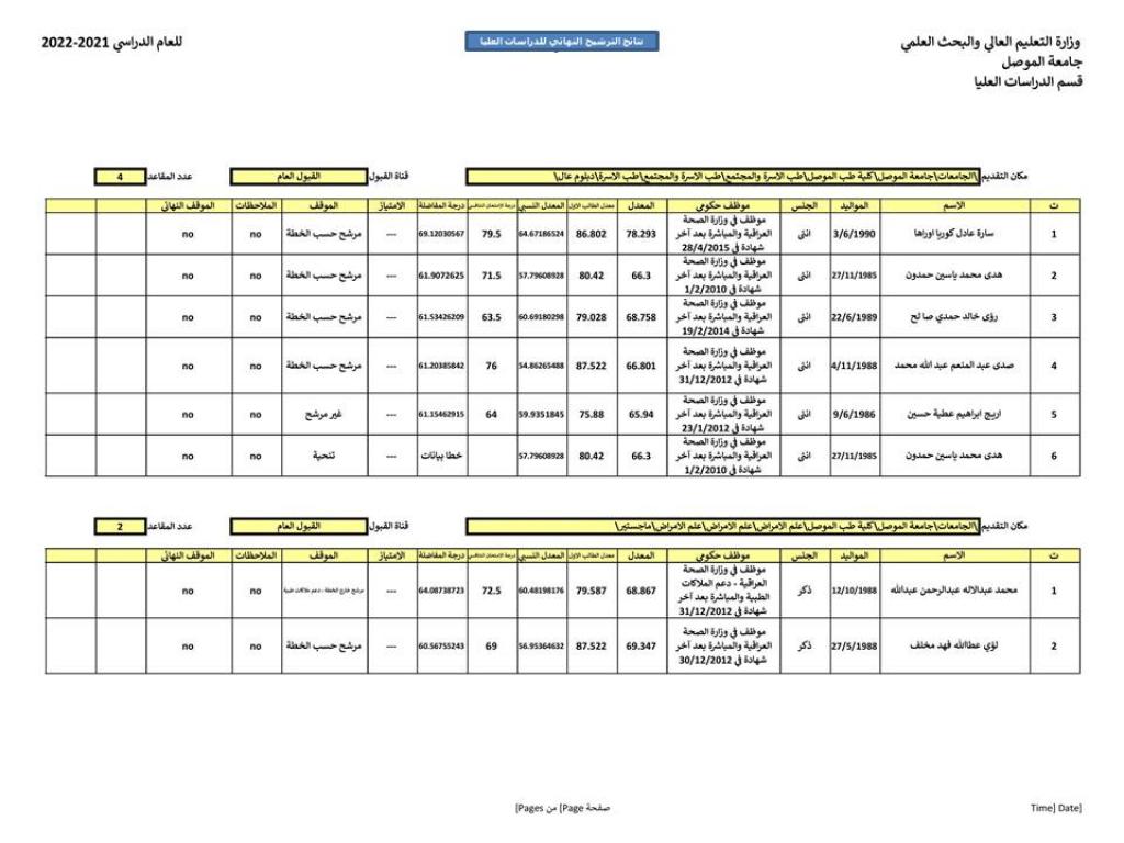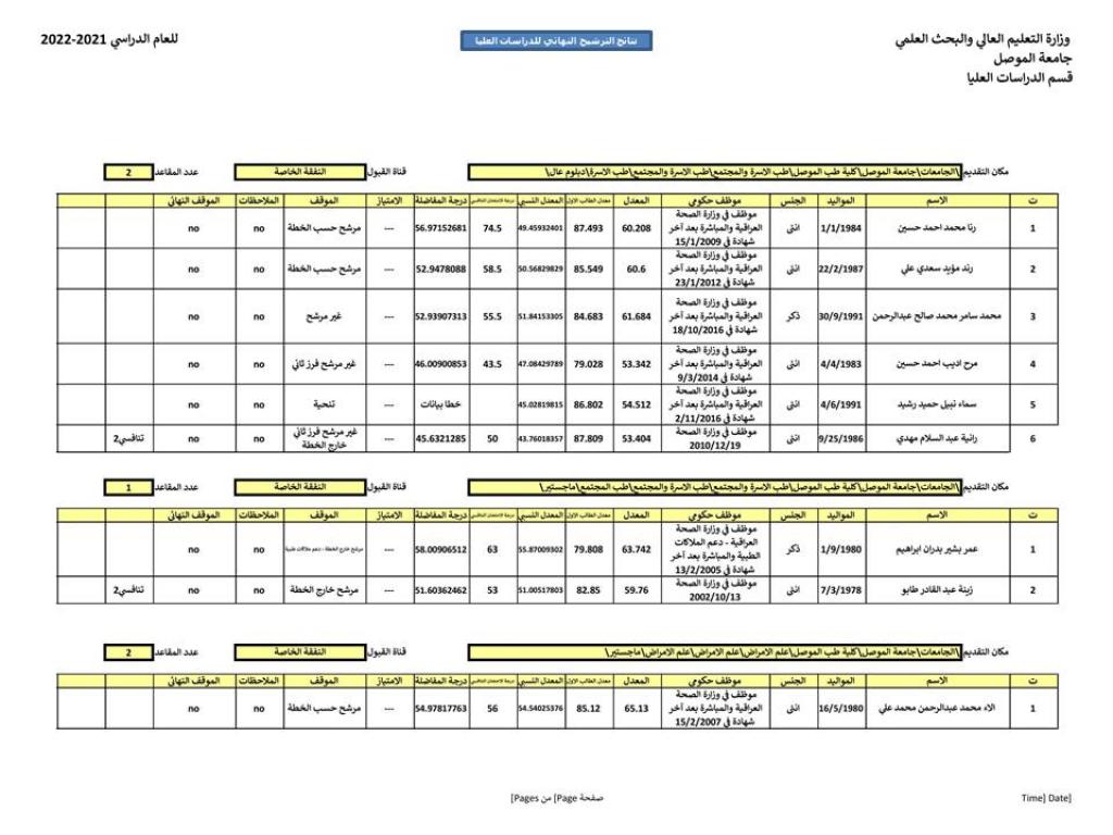 اعلان نتائج القبول النهائي للمتقدمين للدراسات العليا في جامعة الموصل (ومنها كلية الطب) للعام الدراسي 2021 – 2022