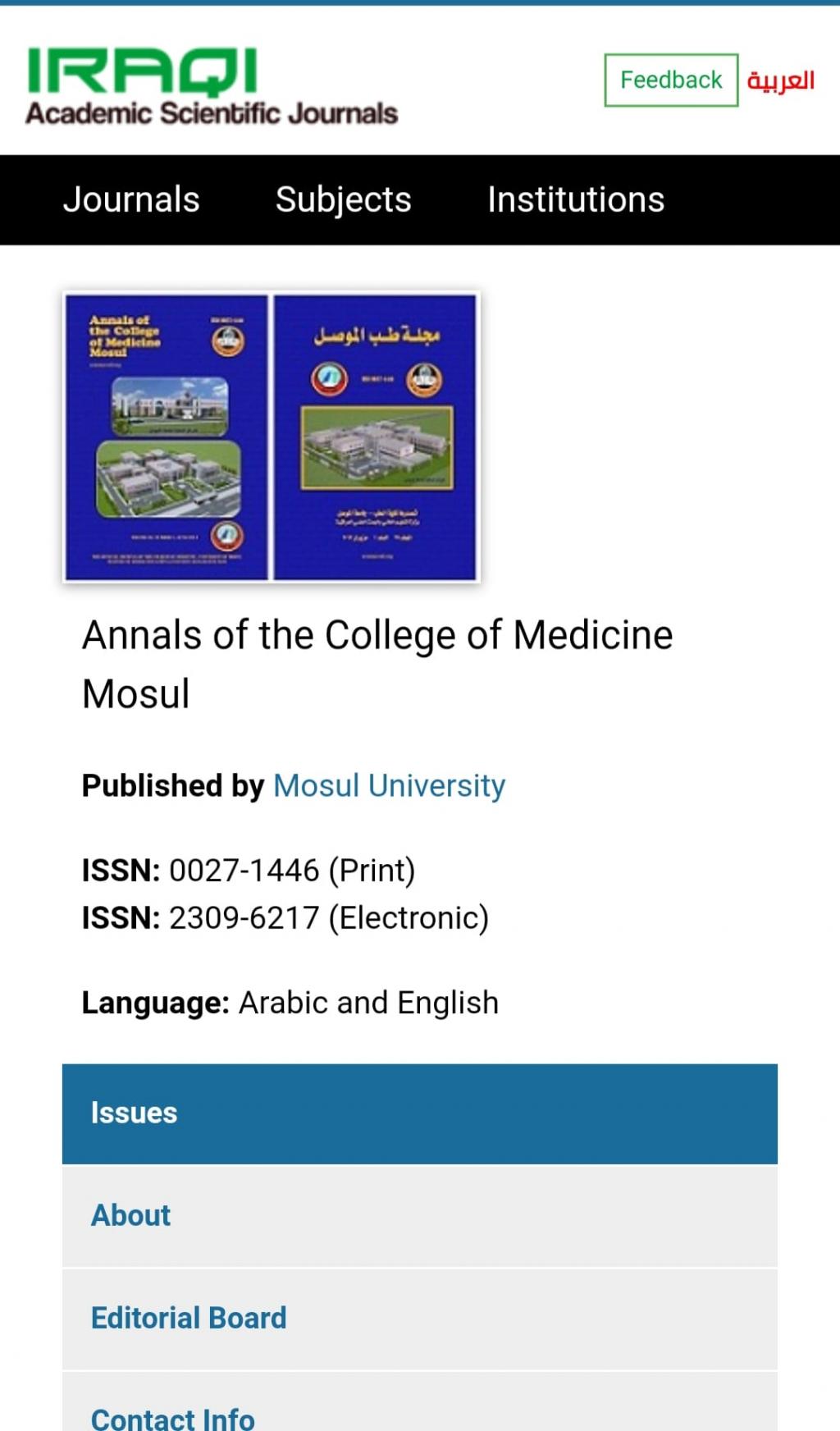 اكتمال تحميل كافة إصدارات أعداد مجلة طب الموصل بموقع المجلات الأكاديمية العلمية العراقية