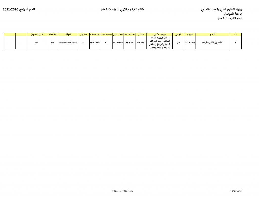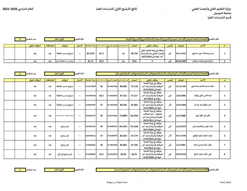 الإعلان عن نتائج الترشيح الأولي للدراسات العليا كلية الطب جامعة الموصل للعام الدراسي 2020 – 2021