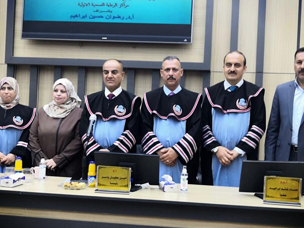 السيد معاون العميد للشؤون العلمية الاستاذ المساعد همام غانم ابراهيم ال زبير يشارك في عضوية اللجنة المشكلة لمناقشة رسالة ماجستير تقدم بها الطالب هاشم مصطفى هاشم مصطفى/فرع العلوم التمريضية السريرية في كلية التمريض في جامعة الموصلعنوانها (انتشار ومحددات ارتفاع ضغط الدم بين مرضى السكري الذين يراجعون مراكز الرعاية الصحية الاولية ) يوم الاثنين 12 ايلول ٢٠٢٢حضر جانبا من المناقشة السيد رئيس جامعة الموصل الاستاذ الدكتور قصي كمال الدين الاحمدي المحترم .تناولت الدراسة التي تقدم بها الطالب دراسة تفصيلية عن ارتفاع ضغط الدم لدى مرضى السكري اضافة الى تأثيراته على الصحة العامة.هدفت الدراسة إلى تحديد نسبة المرضى الذين يعانون من كلا الحالتين السريريتين وتوضيح طرق علاجهم .ترأس لجنة المناقشة الأستاذ الدكتور امين عجيل ياسر / كلية بابل وعضوية كلا من الأستاذ المساعد الدكتور همام غانم ال زبير والاستاذ المساعد الدكتور هنادي جبار محمود وعضوية وإشراف الأستاذ الدكتور رضوان حسين ابراهيم