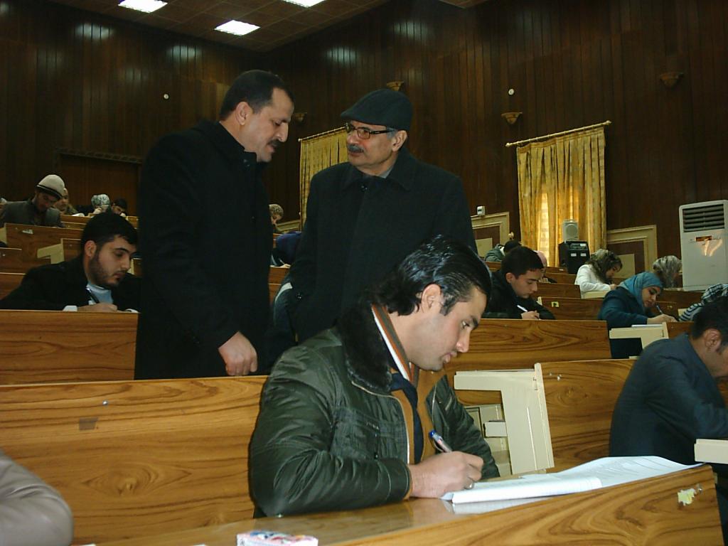 قام السيد عميد كلية الطب يرافقه كل من معاون العميد للشؤون العلمية ومعاون العميد للشؤون الادارية ورئيس اللجنة الامتحانية بزيارة تفقدية للطلبة الممتحنين للاطلاع على سير الامتحانات وذلك يوم الاحد المصادف 13/1/2013