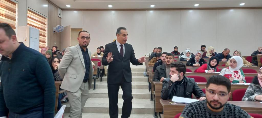 تفقد السيد عميد كلية الطب الأستاذ الدكتور باسل محمد نذير سعيد والسيد المعاون العلمي اليوم الأحد 15/1/2023 انطلاق امتحانات نصف السنة للعام 2022-2023 لكلية الطب عبر جولة في القاعات الامتحانية كافة ومتابعة انسيابية الامتحان وتنسيق جدول توزيع السادة المراقبين وانتظام توفر وسائل الراحة من الاضاءة وتدفئة قاعات الامتحان لتهيئة الجو الامتحاني الملائم