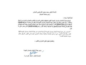 كلية الطب في جامعة الموصل تتصدر مشهد الاعتماد البرامجي في العراق: تجديد شهادة الاعتماد الأردني الدولية للعام الثاني