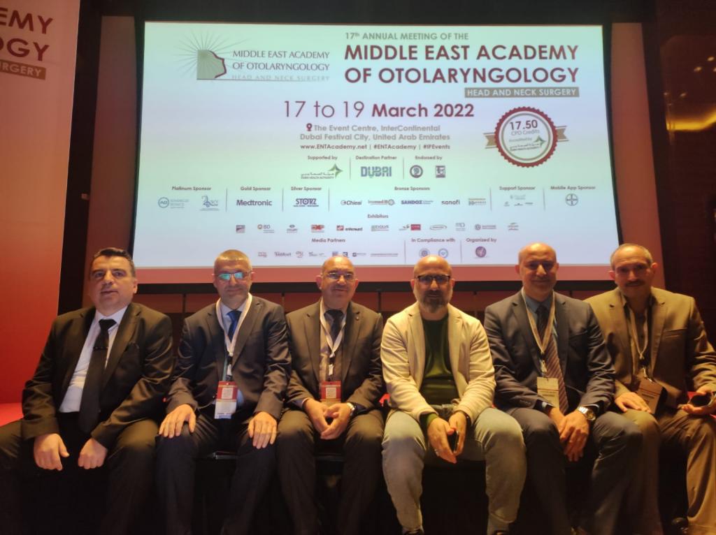أقيم في دبي المؤتمرُ السنوي السابع عشر لأكاديمية الشرق الأوسط لجراحة الأنف والاذن والحنجرة، وذلك للمدة 17 – 19 آذار 2022. شارك وحضر المؤتمرَ أكثرُ من ألف طبيب مختص من مختلف دول العالم، من بينهم تدريسيان من فرع الجراحة لكلية الطب جامعة الموصل الأستاذ الدكتور علي عبدالمطلب محمد، والأستاذ المساعد الدكتور هيثم عبدالملك النوري.ناقش المؤتمرُ أحدثَ وآخر التطورات المتعلقة بالسمع وزراعة القوقعة وإعادة التأهيل للمرضى الذين يعانون من مشاكل في السمع والالتهابات المزمنة في الجيوب الأنفية والشخير وانقطاع التنفس إضافة إلى مشاكل عدم الاتزان.وأوصى بضرورة فحص الإعاقات السمعية للمواليد، ما يضمن الكشف عنها مبكراً، وإدراج هذا الفحص ضمن برنامج فحوص حديثي الولادة كونه يساعد على علاج الأمراض السمعية بصورة مبكرة، ويخفض حالات الإصابة بالصمم بين الأطفال، من خلال عمليات زراعة قوقعة الأذن.
