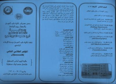 ضمن مهرجان كلية الطب بالاحتفال بيوم الجامعة وبرعاية الاستاذ الدكتور اُبيّ سعيد الديوه جي تنفذ كلية الطب وحدة الارشاد الجامعي المؤتمر الطلابي الثاني بعنوان " طلبة اليوم اساس المستقبل فلنعمل معهم لبناء مستقبلنا" بتاريخ 29-30/4/2013 على قاعة الدراسات العليا في كلية الطب