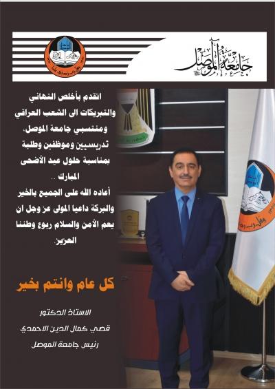 تهنئة السيد رئيس جامعة الموصل لمناسبة عيد الاضحى المبارك