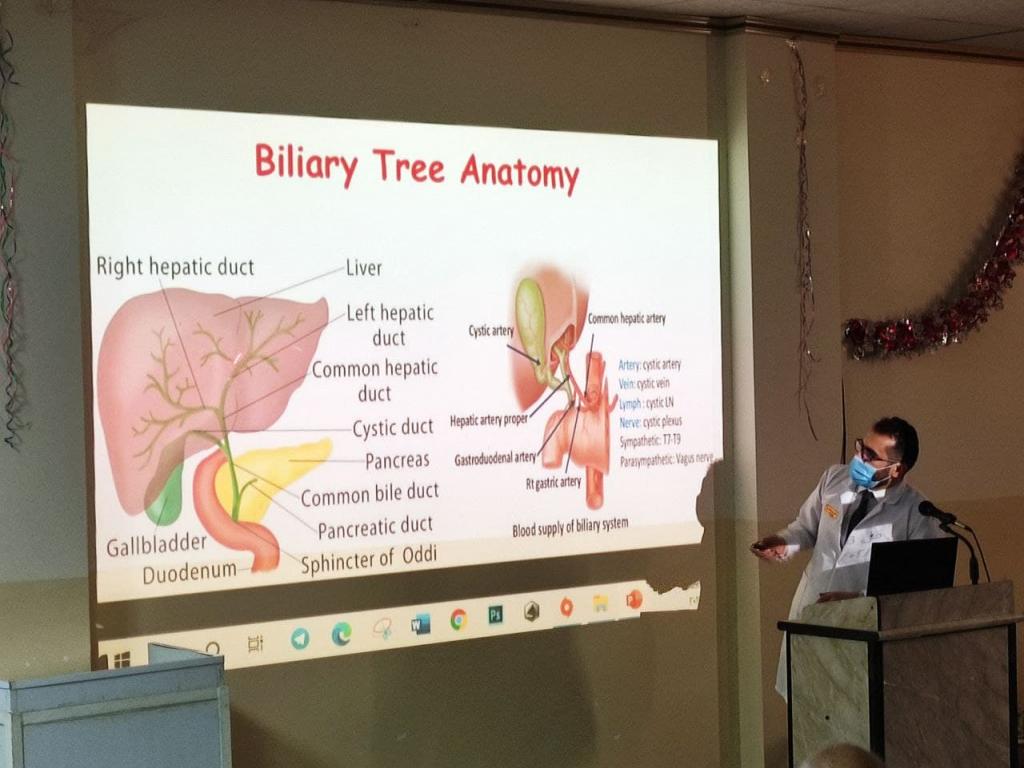 فقد تمّ تقديم السيمنار العشرين الموسوم Examples of Biliary System Diseases من قبل الطلاب مصطفى سمير محمد، ونور ربيع محمد، وإستبرق علي احمد، واية إدريس حسن، وبإشراف تدريسي الفرع الأستاذ المساعد الدكتور اسماعيل داود سعيد. تمت فيه مناقشة بعض حالات امراض القنوات الصفراوية، وكيفية تشخيصها وسبل علاجها، وآخر مستجدات التداخلات المنظارية في هذه الحالات.