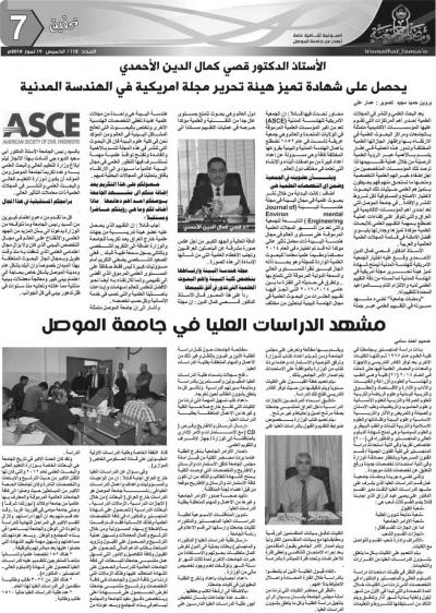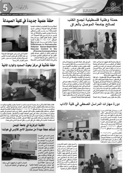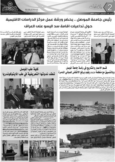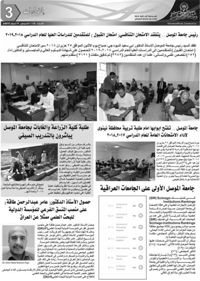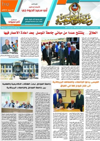 جامعة الموصل تصدر العدد 112 من جريدة ومضات جامعية لشهر تموز 2018