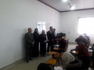 تفقدت الأستاذة الدكتورة بيبين خورشيد السليفاني عميد كلية طب الموصل الثلاثاء 20 شباط 2018 امتحانات نصف السنة لطلبة المرحلة الأولى وكذلك امتحانات المؤجلين للمراحل الأخرى للعام الدراسي الحالي 2017 ــ 2018. وشملت الجولة القاعة العلمية وقاعة الشابندر. وتم خلال هذه الجولة التفقدية الاطلاع عن كثب عن سير الامتحانات ونوعية الأسئلة ووضعية جلوس الطلبة والى غير ذلك. بالمقابل أبدى بعض مراقبي تلكم القاعتين بعض الملاحظات، والتي ستأخذ دورها بالاهتمام والمتابعة من قبل العمادة. يذكر أن هذه الامتحانات كانت قد ابتدأت منتصف الاسبوع الماضي، ومن المقرر انتهاؤها أواخر شباط الجاري. هذا، وقد رافقَ عميدَ الكلية كلٌّ من المعاون العلمي الاستاذ الدكتور باسل محمد نذير سعيد والمعاون الإداري الأستاذ المساعد الدكتور حازم خليل العلاف