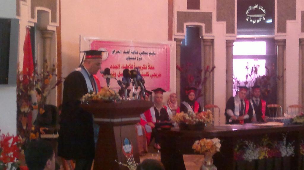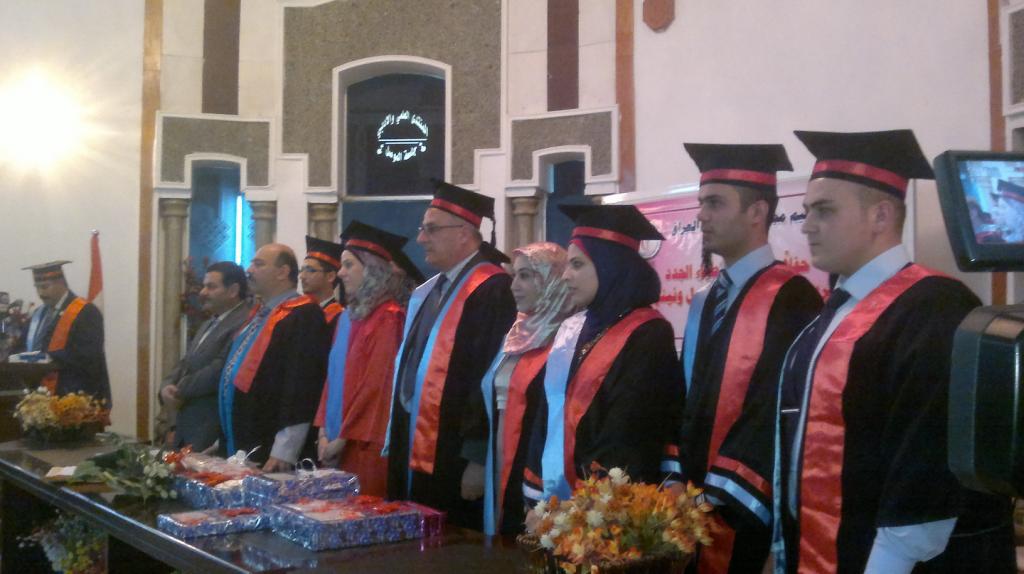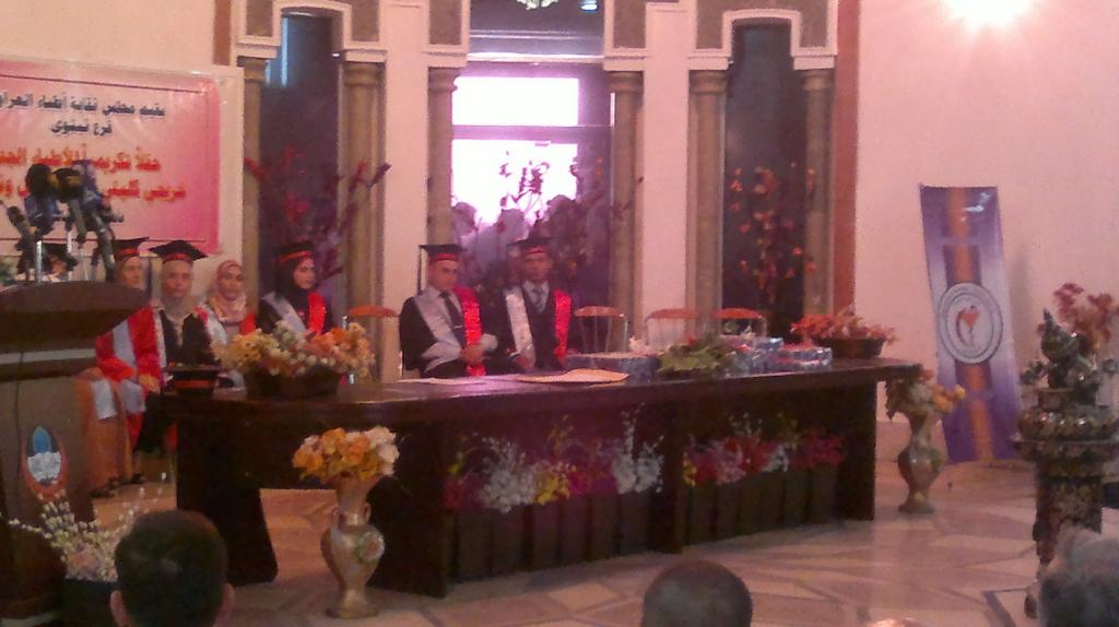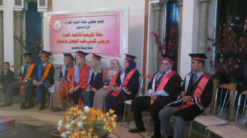 حصلت موافقة السيد رئيس جامعة الموصل على اقامة حفلة التخرج وترديد القسم للأطباء خريجي كليتي الطب وطب نينوى للعام الدراسي 2011 – 2012 على قاعة المنتدى الأدبي في جامعة الموصل (القصور الرئاسية) يوم الجمعة المصادف 7 ايلول 2012 الساعة الرابعة عصراً . استهل الحفل بقراءة آي من الذكر الحكيم للقارئ الطالب عبدالسلام عبدالوهاب , ثم تلاها كلمة نقابة الاطباء في محافظة نينوى القاها الدكتور محمد خليل ابراهيم نقيب الاطباء ، والقى الاستاذ الدكتور مزاحم الخياط عميد كلية الطب كلمته في هذه المناسبة وتلاها كلمة الاستاذ الدكتور فارس بكر الصواف عميد كلية طب نينوى , وقام الخريج الدكتور زيد رافع الزبيدي بالقاء كلمة الخريجين , وفي خلال الحفل سلم نخبة من الخريجين الراية أمانة في اعناق الدورة التالية , ثم ردد الخريجين قسم الاطباء مع السيد نقيب الاطباء وعميد كلية الطب وعميد كلية طب نينوى والسيد مدير عام دائرة صحة نينوى والذي تضمن مايلي:- اقسم بالله العظيم وبمقدساتي أن اكون وفيا لمن علمني هذه المهنة عطوفا على المرضى مؤثرا مصلحتهم وأن لا أفشي سراولا أعطي دواء بقصد الاضرار وأن أكون حسن السيرة مع زملائي مخلصا لامتي ووطني ثم وزع السيد عميد كلية الطب الهدايا التقديرية على العشر الاوائل على كلية طب الموصل وتفضل السيد عميد كلية طب نينوى بتوزيع الهدايا على الاوائل من خريجي كلية طب نينوى.اختتم الحفل بالتوثيق بالصور التذكارية في حدائق المنتدىالف مبروك للخرجين اطباء المستقبل نتمى لهم التوفيق في حمل الامانة الطبية في المجتمع.