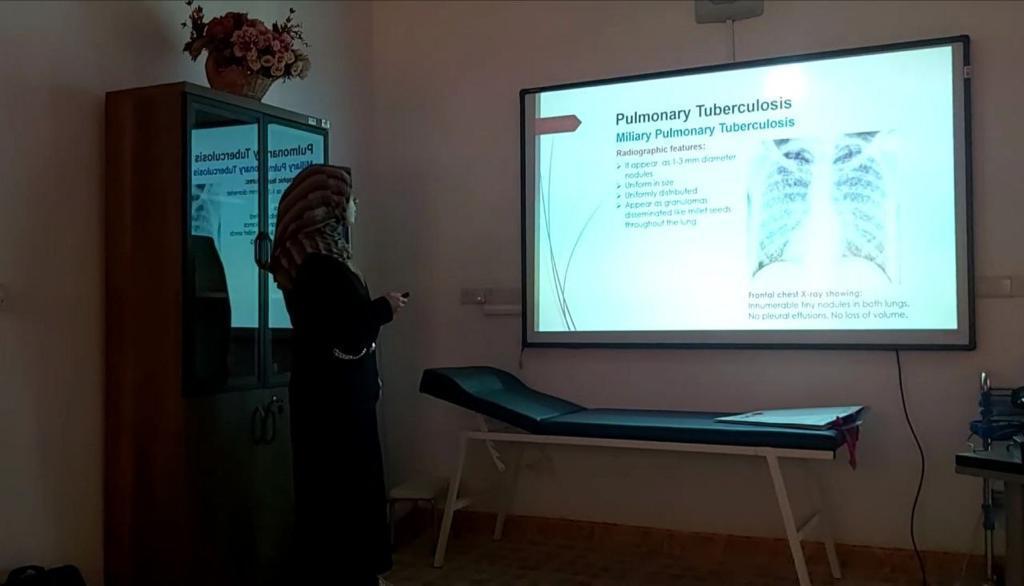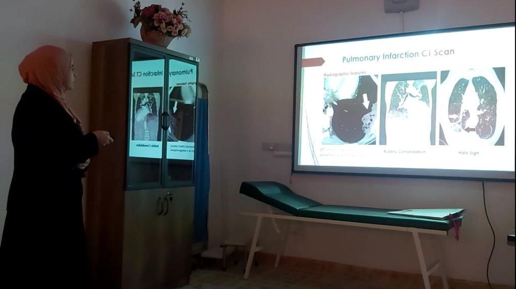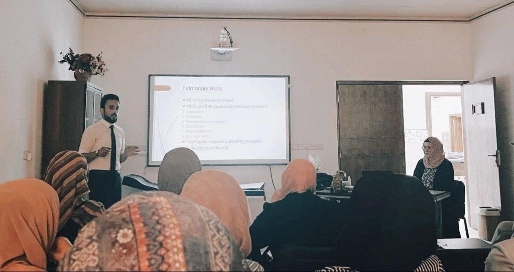 نظم فرع الاشعة سيمنارا علميا لطلبة المرحلة الخامسة يوم الاربعاء 20 نيسان 2022 بعنوان ” التشخيص الشعاعي لكتل واورام الرئة باستخدام اشعة الصدر و جهاز المفراس الحلزوني للرئة ” , حضر الاجتماع رئيس الفرع المدرس الدكتورة داليا عبد القادر الفلكي وعموم تدريسي الفرع