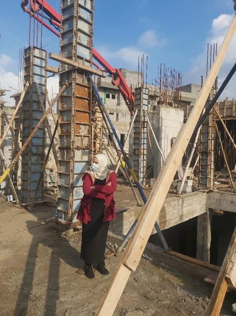 صب أعمدة الطابق الاول للأقسام العلمية/ 2 لكلية الطب جامعة الموصل (في الجانب الأيمن)
