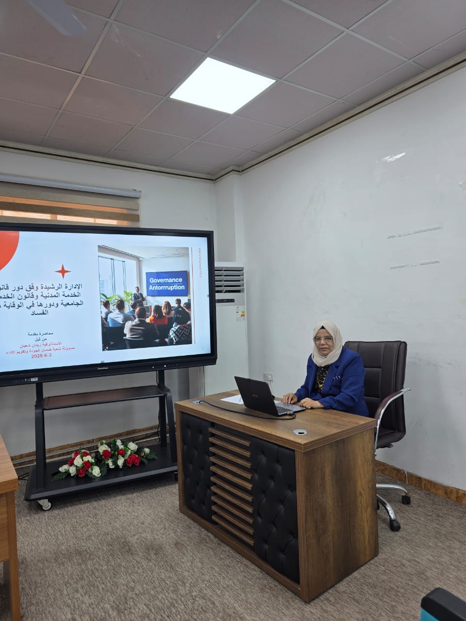 1. أ. رقية زيدان شعبان: “الإدارة الرشيدة وفق دور قانون الخدمة المدنية وقانون الخدمة الجامعية ودورها في الوقاية من الفساد”.