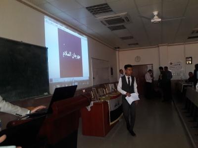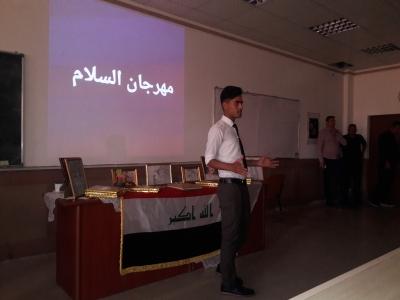 في غمرة احتفالات جامعة الموصل بعيدها الحادي والخمسين، حَضَرَ السيد رئيس جامعة الموصل الأستاذ الدكتور أبي سعيد الديوه جي مهرجانَ السلام الذي أُقيم يومَ الأحد 8 نيسان 2018 في ربوع كلية الطب جامعة الموصل . وكان في مقدمة مستقبلي معاليه السيد وكيل عميد الكلية الأستاذ الدكتور باسل محمد نذير سعيد والمعاون الإداري لعميد الكلية الأستاذ المساعد الدكتور حازم خليل العلاف ولفيف من اساتذة الكلية وبعض الموظفين. وتأتي زيارة السيد رئيس الجامعة لكليتنا حيثلبّى سيادته دعوةَ طلابه من المرحلة الثانية لكلية الطب جامعة الموصل الذين نظموا احتفالية طلابية شبابية بعنوان "مهرجان السلام". وجاء مهرجان السلام هذا لنشر قيم السلام المجتمعي وبث روح التعاون ليكون أطباء المستقبل رمزاً للإنسانية والسلم والسلام وعنواناً للتعاون والأمل والخير. بدأ المهرجان بعزف النشيد الوطني، ثم قدم الطلاب فقرات متنوعة ما بين الشعر والنثر والخاطرة والقصة. كما تمّ عرض أفلام فيديوية لاسيما للمنطقة المنكوبة من أيمن الموصل. كما تمّ عرض بعض الرسومات الرائعة للطلبة عَكَسَتْ رغباتهم وهواياتهم وإبداعاتهم. وفي نهاية الحفل تمّ توزيع الهدايا التقديرية على المساهمين بهذا المهرجان. كما تم التقاط الصور التذكارية مع السيد رئيس الجامعة الذي بارك هذا النشاط الطلابي الراقي. وفي نهاية زيارته لكليتنا، تمّ توديع السيد رئيس الجامعة بنفس الحفاوة التي اسْتُقْبِلَ بها. لمزيد من التفاصيل انقر هنا.