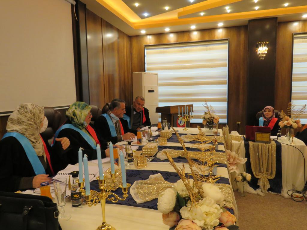 تألفت لجنة المناقشة من الأستاذ الدكتورة وحدة محمد طيب النعيمي (رئيساً)، والأستاذ المساعد سناء محمد طيب أمين (عضواً)، والطبيب الاستشاري الدكتور حاتم عبدالمجيد النعيمي (عضواً)، والأستاذ المساعد الدكتور عبدالكريم يونس سليمان (عضواً ومشرفاً).