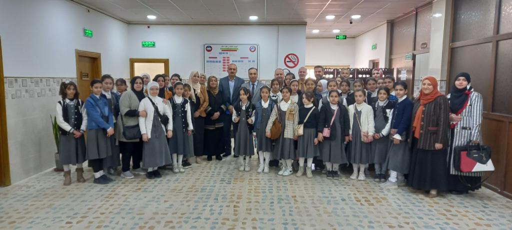 عمادة كلية الطب الممثلة بسيادة عميد الكلية الأستاذ الدكتور باسل محمد نذير سعيد المحترم ومعاونيه العلمي والاداري يستقبلون براعم مدرسة القادسية الابتدائية للبنات اليوم الثلاثاء الثامن والعشرين من شباط 2023السيدة مديرة المدرسة والمعلمات شكروا سيادة العميد لحسن الاستقبال وتسهيل تعريفهم بفروع الكلية عبر جولة اصطحبهن فيها مسؤولة شعبة الاعلام والسيد مسؤول النتاجات العلميةوتفاعل الطالبات مع توضيحات وشروحات التدريسيين المبسطة حول مواضيع طبية عامة