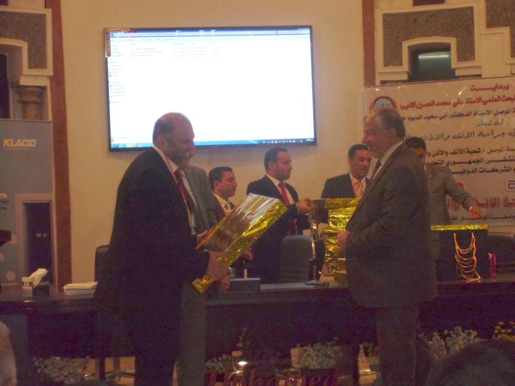 برعاية الأستاذ علي محمد الحسين الاديب وزير التعليم العالي والبحث العلمي وبإشراف وحضور الأستاذ الدكتور أبي سعيد الديوه جي رئيس جامعة الموصل وحضور الأستاذ الدكتور فؤاد قاسم محمد مساعد رئيس الجامعة للشؤون الادارية والأستاذ الدكتور مساعد لفتة حمزة رئيس المجلس العلمي العراقي لجراحة الانف والاذن والحنجرة الأسبق اقامت شعبة الانف والاذن والحنجرة في كلية الطب وبالتعاون مع المستشفى الجمهوري التعليمي مؤتمرها العلمي الأول تحت شعار الافاق المستقبلية لجراحة الانف والاذن والحنجرة في 22 – 23 / 5 / 2013 في قاعة المنتدى العلمي والادبي بالجامعة وبواقع 7 أبحاث علمية و 3 محاضرات القيت من الشركات الداعمة للمؤتمر في اليوم الأول وحمل اليوم الثاني 11 بحثاً علمياً مع محاضرة علمية لأحدى الشركات الداعمة له تليت جميعها في اطار 5 جلسات علمية . استهل المؤتمر بقراءة اية من الذكر الحكيم ثم كلمة للسيد رئيس الجامعة ثمن فيها الجهود الحثيثة لكلية الطب للارتقاء بالمستوى العلمي وخدمة المجتمع تلاها كلمة السيد عميد كلية الطب التي رحب فيها بالسادة الحضور لهذا اللقاء المبارك الذي يعد انجازا يدل على التطور والتقدم العلمي لهذه الشعبة والجهود المبذولة لمنتسبيها العاملين فيها , ثم قال سيادته ان هذا المؤتمر هو الثاني لكلية الطب في الشهر الحالي وبذلك يكون مجموع المؤتمرات التي اقامتها كلية الطب في هذا العام الدراسي 2012 -2013 اربعة مؤتمرات كبيرة لها اهميتها في الارتقاء بالمستوى العلمي وتطوير التعليم الطبي والتي تساهم في إغناء الخدمات الطبية , كما وبين سيادته من خلال كلمته ان هذا المؤتمر هو ثمرة التعاون بين كلية الطب والمستشفى الجمهوري التعليمي وهو يأمل ان يزداد ويتوطد هذا التعاون في كافة المجالات خدمة للمجتمع ,قد اثنى سيادته على الدعم المتواصل لكلية الطب من قبل جامعة الموصل وشكر حضور السيد رئيس الجامعة , واختتم سيادته بالدعاء بان يبارك الله جميع الجهود المبذولة لانجاح هذا المؤتمر متمنيا للجميع الموفقية في تحقيق الاهداف لخدمة العراق الغالي…. ثم تم تكريم نخبة من اساتذة وموظفي الكلية وقد اقيم على هامش المؤتمر معرض للادوية من قبل الشركات الداعمة للمؤتمر وهي:شركة( Pioneer) وشركة (Bilim) وشركة (Abbott) وشركة (Meda)تشكر عمادة كلية الطب الباحثين والقائمين على المؤتمر املين ان تسهم هذه البحوث في تطوير طرق علاج مرضى الانف والاذن والحنجرة