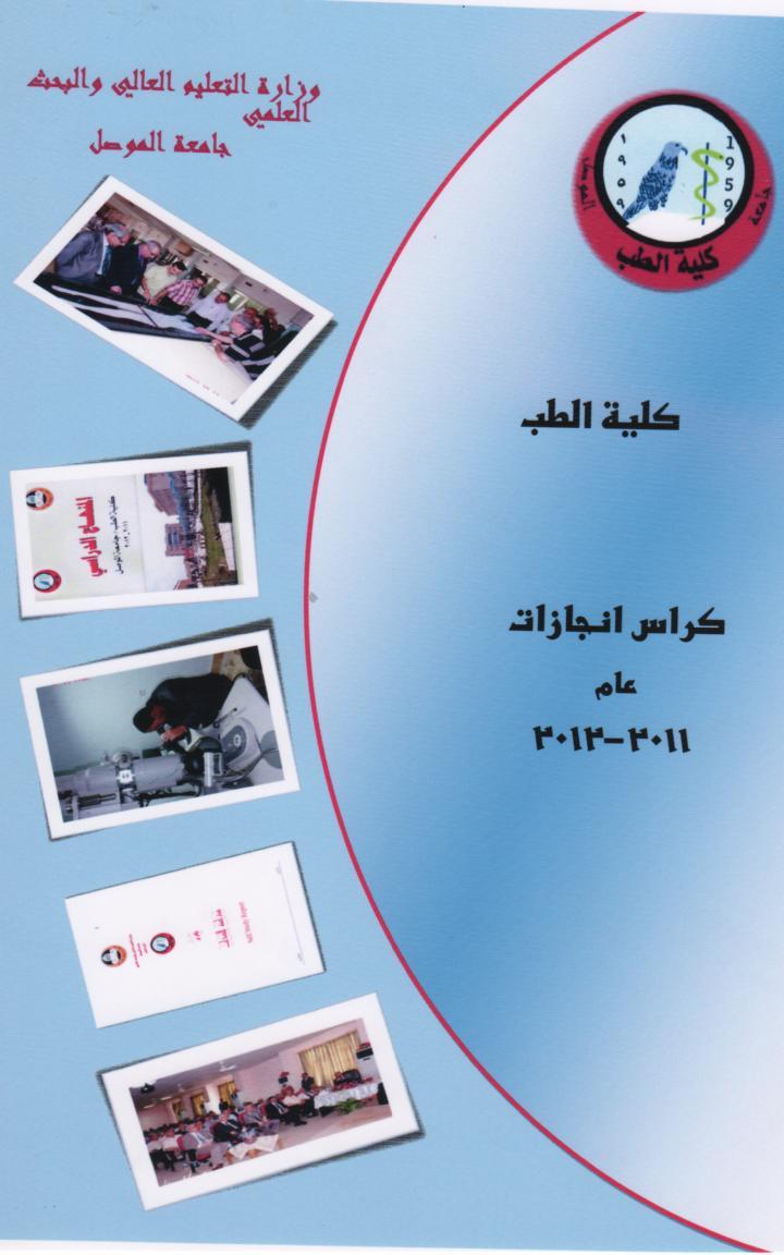 استنادا الى الكتاب ذي العدد 9/82/27912 بتاريخ 16/12/2012 الصادر من رئاسة جامعة الموصل/ قسم ضمان الجودة والأداء الجامعي حول توثيق انجازات الكلية للعام الدراسي 2011-2012 وفق المحاور الأحدى عشر (معايير اتحاد الجامعات العربية )وعلى شكل كراس. تم بعون الله انجاز الكراس الذي ضم انجازات كلية الطب خلال العام الدرا سي 2011-2013.