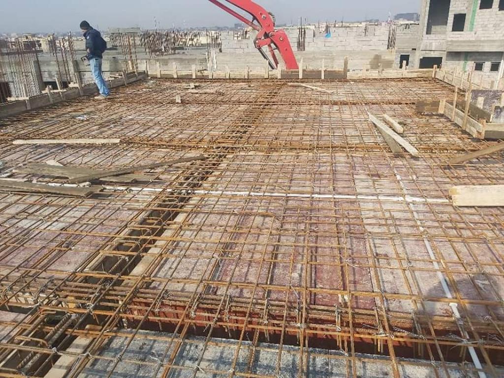 صب أعمدة الطابق الاول للأقسام العلمية/ 2 لكلية الطب جامعة الموصل (في الجانب الأيمن)