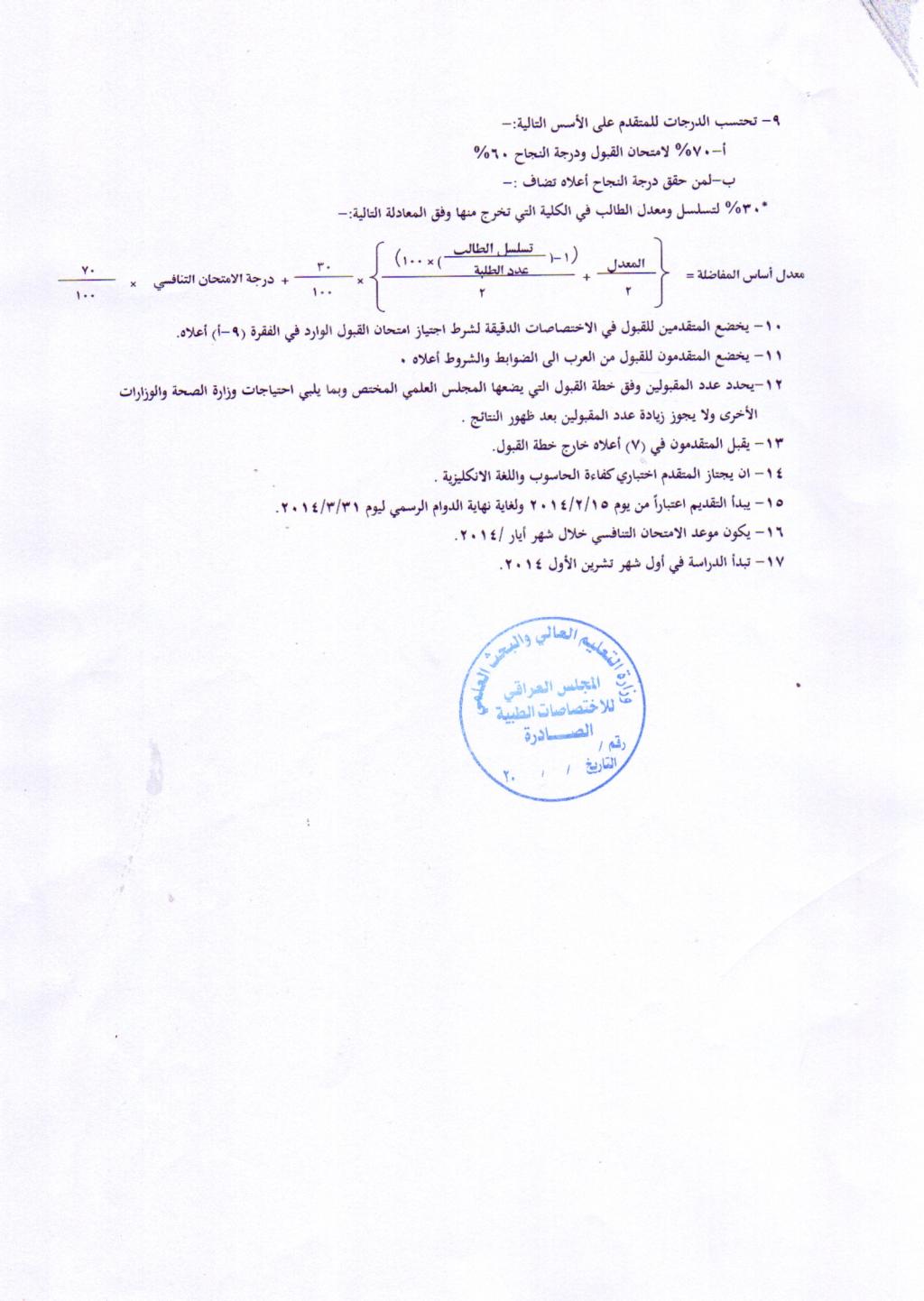 ضوابط وشروط التقديم للبورد العراقي للعام 2014-2015 – كلية الطب