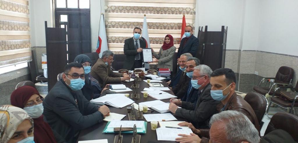وازاءً لما تقدّم، استضاف مجلس الكلية اثناء انعقاد جلسته العاشرة يوم الثلاثاء 9 شباط 2021 الطالبةَ لتقديم التهنئة والإشادة بها وبتفوقها. كما تفضّل عميد الكلية الأستاذ الدكتور باسل محمد نذير سعيد بتقديم كتاب شكر وتقدير لها.