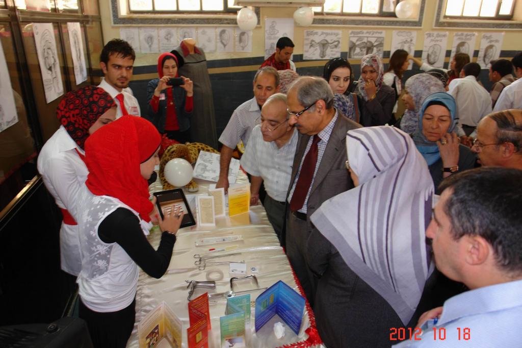 برعاية السيد عميد الكلية الدكتور مزاحم فتاح الجيتجي وبمناسبة العام الدراسي الجديد اقيم في كليتنا معرض علمي ابداعي محاط بالمنهج والمادة العلمية للطلبة في الفروع السريرية ( الباطنية، الجراحة، الاطفال ، النسائية ) . القائمون على المعرض هم طلاب المرحلة السادسة واباشراف مباشر من قبل تدريسيين كلا حسب اختصاصه حيث تم عرض اهم الادوية والاجهزة الطبية المستعملة ( اشعة اكس ري .. والكتب المفيدة للطلبة وغيرها من التفاصيل الخاصة بكل مادة.. والمعرض ملحق بركن لنشاطات الطلبة في التصوير والرسم والميديا . اقيم المعرض في يوم الخميس المصادف 18/10/2012 في كافتريا كلية الطب