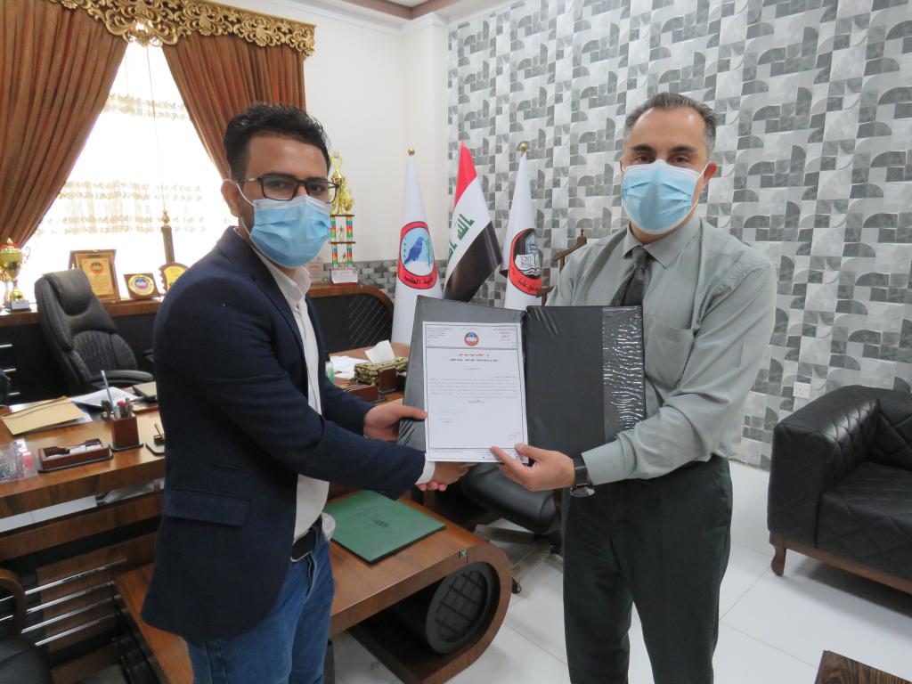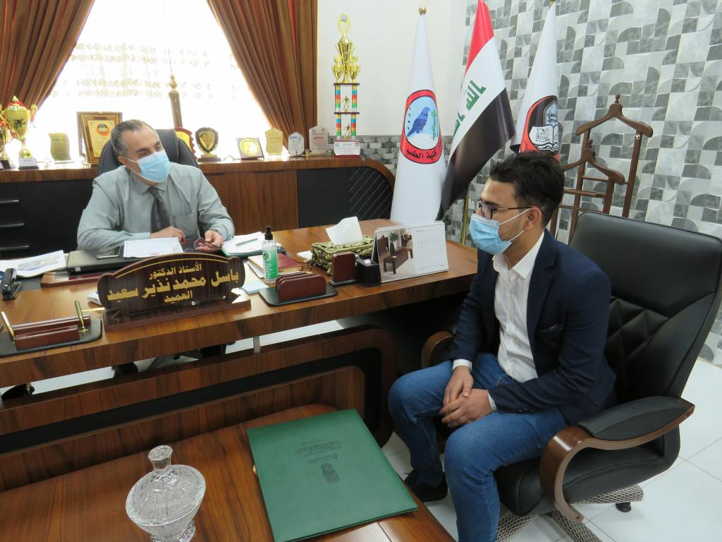 عميد كلية الطب جامعة الموصل يلتقي الحافظ المتقن الطالب عماد عبد علي ويكرمه بكتاب شكر وتقدير