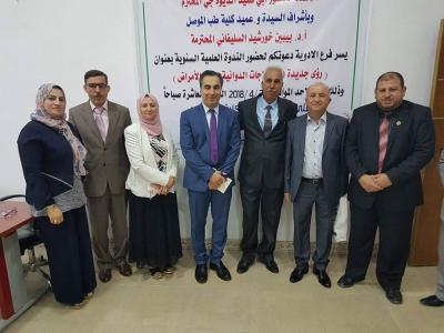 تحت شعار: "بالعلم نبني ونرتقي"، وبرعاية السيد رئيس جامعة الموصل الأستاذ الدكتور أبي سعيد الديوه جي، وبحضور السيد مساعد رئيس الجامعة للشؤون العلمية الأستاذ الدكتور مفيد ذنون يونس، وبحضور رئيس جامعة نينوى الأستاذ الدكتور مزاحم قاسم الخياط، وبإشراف وحضور عميد كلية الطب جامعة الموصل الأستاذ الدكتورة بيبين خورشيد السليفاني، أقام فرع الأدوية كلية الطب جامعة الموصل الندوة العلمية السنوية الموسومة: "رؤى جديدة في العلاجات الدوائية لبعض الأمراض"، وذلك يوم الأحد 29 نيسان 2018 في رحاب القاعة العلمية لمبنى الفروع السريرية كلية طب نينوى. اسْتُهِلتْ أعمال الندوة بكلمة ترحيبية، تفضّلَ بإلقائها رئيس فرع الأدوية الأستاذ المساعد الدكتور قاسم صالح النعيمي، حيث أبدى سرورهُ وامتنانه للحضور عالي المستوى للندوة. مبدياً في الوقت ذاته شكرَه الجزيل للسادة المحاضرين بإغنائهم للندوة ببحوثهم المتميزة. بعدها، ألقى الأستاذ الزائر (من بريطانيا) الدكتور حسين السردار محاضرة الإفتتاح والموسومة: A Paradigm Shift in Management of Atrial Fibrillation and Acute Coronary Syndrome Queen Mary Medical School University of London- London UK. وبعد استراحة قصيرة، ابتدأتْ أعمال الجلسة العلمية الأولى برئاسة الأستاذ الدكتور عصام حمو الدباغ، حيث تألفتْ من محاضرتين اثنتين. أُولى المحاضرات للأستاذ الدكتور عماد عبدالجبار ذنون والموسومة: New Advances in Erectile Dysfunction Treatment، تلاهُ الأستاذ المساعد الدكتور شامل هاشم النعيمي ومحاضرته الموسومة: Updates in Pharmacotherapy of Bronchial Asthma . وبعد ذلك، ابتدأتْ أعمال الجلسة العلمية الثانية برئاسة الأستاذ المساعد الدكتور قاسم صالح النعيمي، حيث تألفتْ من محاضرتين اثنتين أيضاً. أُولى المحاضرات للمدرس الدكتورة شذى هاني محمد ومحاضرتها الموسومة: Phytotherapy and Menopause، ثم ختام محاضرات الندوة كانت مع المدرس المساعد الدكتور عمر مؤيد شندالة ومحاضرته الموسومة: Nano- Technology in Pharmacology. استغرقَ كل محاضر مدة خمس عشرة دقيقة لعرض محاضرته، ثم كان يعقب كل محاضرة مداخلات ومناقشات وأسئلة من قبل الحضور لتسليط الأضواء على المواضيع المطروحة من جميع زواياها. وكان مِمَّنْ حَضَرَ الندوة السيد معاون عميد كلية الطب جامعة الموصل للشؤون العلمية الأستاذ الدكتور باسل محمد نذير سعيد، والسيد معاون عميد كلية الطب جامعة الموصل للشؤون الإدارية الأستاذ المساعد الدكتور حازم خليل العلاف، فضلاً عن منتسبي فرع الأدوية وبعض تدريسيي كليات الصيدلة وطب الموصل وطب نينوى.