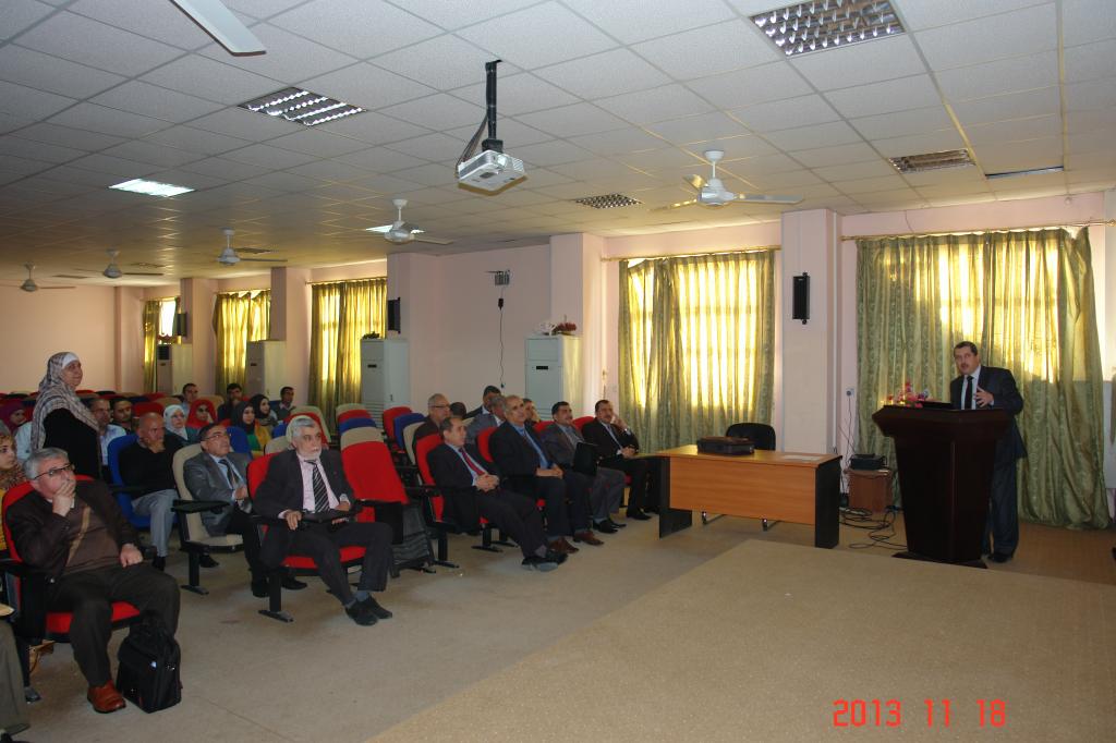 بحضور السيد عميد كلية الطب الدكتور مزاحم فتاح الجيتجي والسادة معاوني السيد العميد للشؤون الادارية والعلمية ونقيب الاطباء في محافظة نينوى , أقام تدريسيو فرع الطب الباطني ندوة بعنوان "مواضيع جديدة في طب الجهاز التنفسي" اليوم الاثنين المصادف 18 تشرين الثاني 2013 الساعة التاسعة صباحا في قاعة الدراسات العليا في الكلية , حضر الندوة عدد من تدريسي الكلية وطلبة الصفوف المنتهية , وكانت المحادثات مستفيضة حول الجديد في سبل العلاج لامراض الجهاز التنفسي .الندوة تضمنت محاضرات علمية مهمة يمكنكم الاطلاع عليها بالنقر على موضوع المحاضرة كما يليAcute Respiratory Distress Syndrome (ARDS) and Acute Lung Injury (ALI) RevisitedMiddle East Respiratory Syndrome Coronavirus (MERS-CoV)Novel approaches for Severe refractory asthma