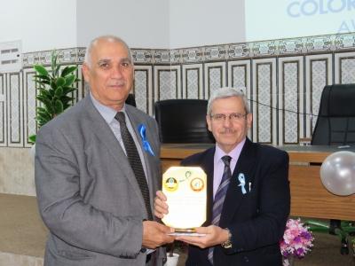 بحضور السيد معاون عميد كلية الطب جامعة الموصل للشؤون الإدارية الأستاذ المساعد الدكتور حازم خليل العلاف، والسيد مقرر فرع الطب كلية الطب جامعة الموصل الأستاذ الدكتور ظاهر جميل الحبو، اقام فرع الطب كلية الطب جامعة الموصل الندوة التوعوية الموسومة: "Colorectal Cancer Awareness"، وذلك يوم الخميس 4 نيسان 2019 في قاعة الدكتور طاهر الدباغ. تألفت الندوة من جلستين اثنتين، ترأس الجلسة الأولى السيد رئيس الفرع الأستاذ الدكتور اسماعيل داود سعيد، فيما ترأس الجلسة الثانية المدرس الدكتور عبدالله زهير اليوزبكي. وقد تناوب على تقديمها نخبة من طلاب المرحلة الرابعة كلية الطب جامعة الموصل، حيث تمّ التعرض إلى الأعراض والتشخيص المبكر وكيفية الوقاية من سرطان القولون. ويهدف هذا النوع من الأنشطة والفعاليات العلمية كشكل من أشكال التوعية المجتمعية بهذا الموضوع المهم، والذي يأتي متزامناً مع الموسم العالمي للتثقيف بهذا الإطار، وعبر العالم ككل. هذا، وقد حضر هذه الندوة أيضاً مسؤولو بعض الشعب والوحدات العلمية والإدارية في الكلية، وجمعٌ طيب من أساتذة كلية الطب لجامعتي الموصل ونينوى، حيث أثنوا على هذا الجهد العلمي الذي قدمهُ الطلاب وبمعية أساتذتهم من فرع الطب، فضلاً عن طلاب الكلية للمراحل الدراسية المختلفة.