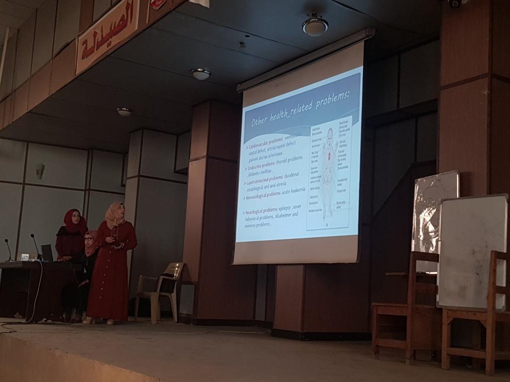 بحضور عـ/ مقرر فرع علم الأمراض كلية الطب جامعة الموصل رئيس لجنة السيمنارات المدرس الدكتورة زهراء مروان شعبان، وضمن أنشطته العلمية، أقام فرعُ علم الأمراض السيمنار الطلابيَّ السابع للعام الدراسي 2019 – 2020، وذلك يوم الثلاثاء 17 كانون الأول 2019 في مدرج 3 كلية الصيدلة جامعة الموصل. فقد قدّمت المجموعة الرابعة Group D من المرحلة الثالثة، وهنّ كل من الطالبات: آية محمد وعدالله، وضحى سالم محمد زكي، وسارة محمد فالح، وآمنة معاذ سالم السيمنار الموسومَ: “Down Syndrome”. هذا، وقد حضر السيمنار ثلةٌ من تدريسيي الفرع.