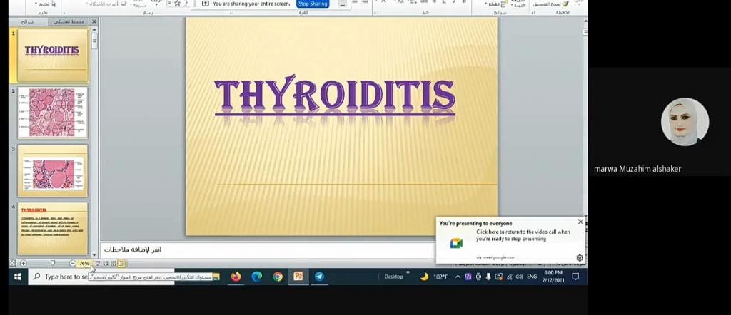 فرع علم الأمراض كلية الطب جامعة الموصل ينتهي من إقامة السيمنارات الافتراضية لطلبة الماجستير للفصل الثاني للعام الدراسي 2020 – 2021