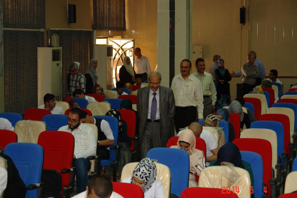 في اطار تفقد الامتحانات النهائية لطلبة كلية الطب فقد زار السيد عميد الكلية الدكتور مزاحم فتاح الجيتجي وبرفقة السادة معاونيه الدكتور قاسم سعيد المعاون العلمي والد كتور احمد حياوي المعاون الاداري كما رافقه كل من السيد مدير التسجيل الدكتور همام غانم والسيد مسؤول اللجنة الامتحانية الدكتور عماد عبد الجبار لمعرفة احتياجات الطلبة متمنين لهم النجاح والموفقية .