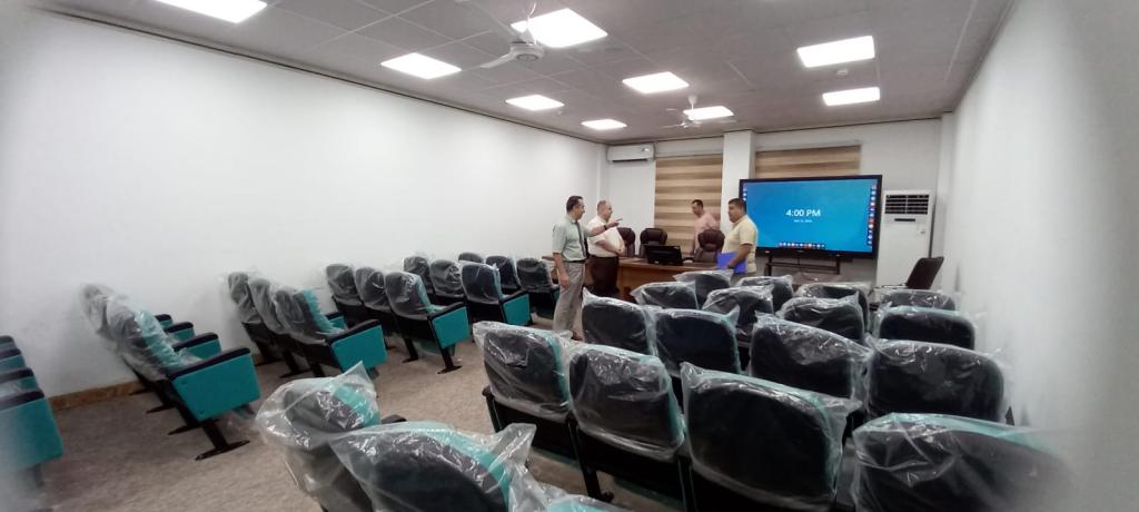 كلية الطب تفتح قاعة للدراسات العلياافتتح الاستاذ الدكتور باسل محمد نذير سعيد عميد كلية الطب يوم الاثنين ١٩ أيلول ٢٠٢٢ قاعة المناقشات للدراسات العليا في مبنى القصور ،تم تجهيزالقاعة بمقاعد جلوس ثابتة وشاشة ذكية تفاعلية ،اضافة الى تجهيزها بباقي الملحقات ،يأتي ذلك استعدادا لبدء العام الدراسي الجديد ٢٠٢٢-٢٠٢٣