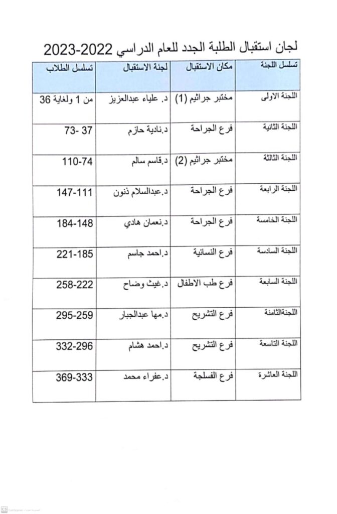 اعلان الى طلاب المرحلة الاولى