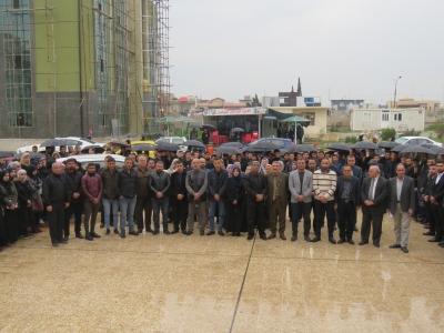 كلية الطب جامعة الموصل تنظم وقفة حداد لقراءة سورة الفاتحة ترحماً على شهداء فاجعة الموصل