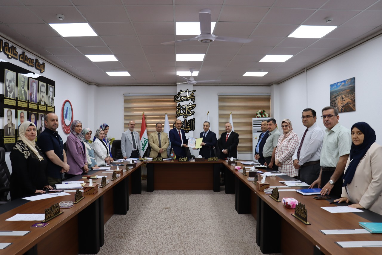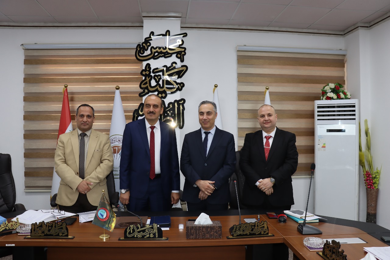 شهد الاجتماع حضور معاون العميد للشؤون العلمية المدرس الدكتور احمد عبد الله الحربي ومعاون العميد للشؤون الإدارية والمالية المدرس الدكتور كرم تراث توفيق آغا ، وباقي أعضاء المجلس رؤساء الفروع العلمية. وخلال الجلسة كرّم المجلس الأستاذ الدكتور باسل محمد نذير سعيد، العميد السابق للكلية، تقديراً لعطائه الثر وجهوده في تعزيز مسيرة الكلية خلال فترة توليه منصب العميد.