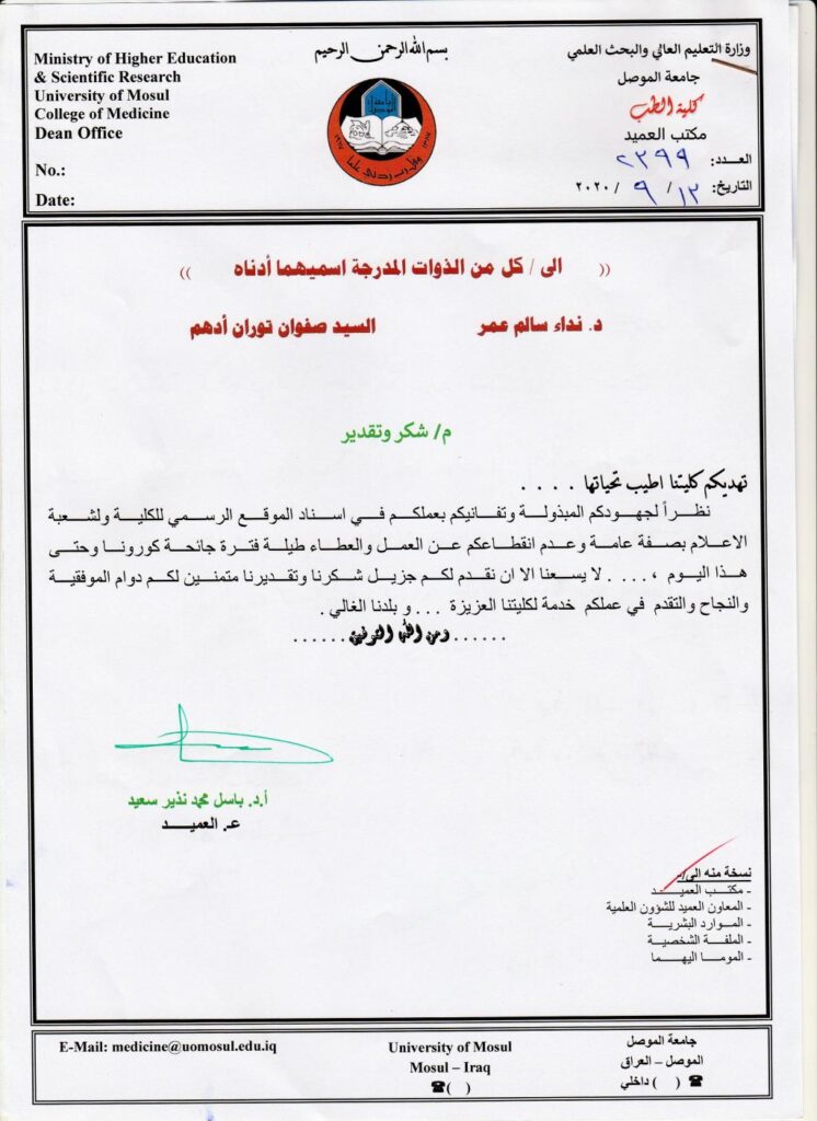 مجلس كلية الطب جامعة الموصل يعقد اجتماعه الأول للعام الدراسي 2020 – 2021
