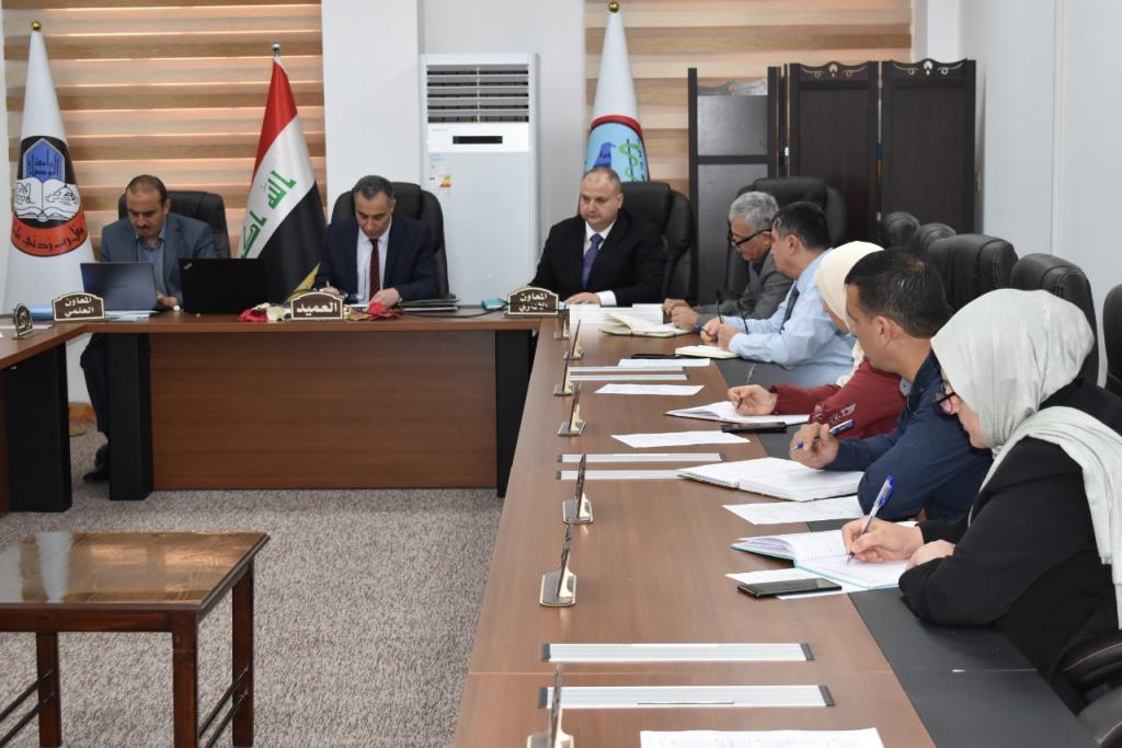 ترأس الاجتماعَ عميدُ الكلية الأستاذ الدكتور باسل محمد نذير سعيد، وبحضور المعاون العلمي الأستاذ المساعد الدكتور همام غانم إبراهيم والمعاون الإداري المدرس المساعد كرم تراث توفيق، إضافة إلى أعضاء المجلس الآخرينَ
