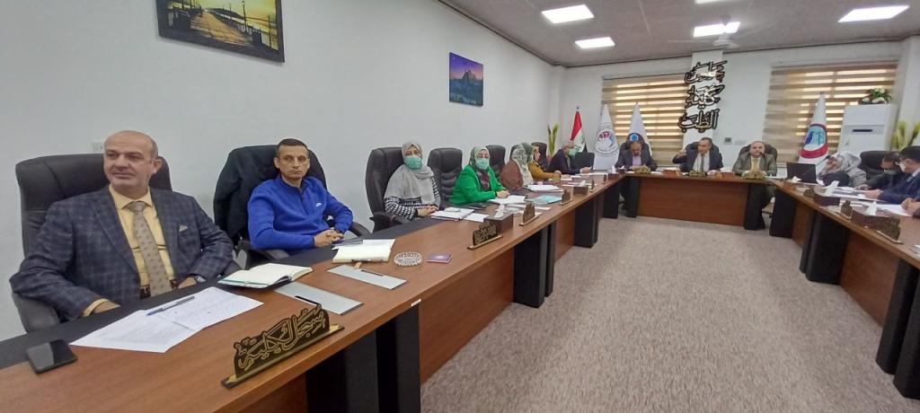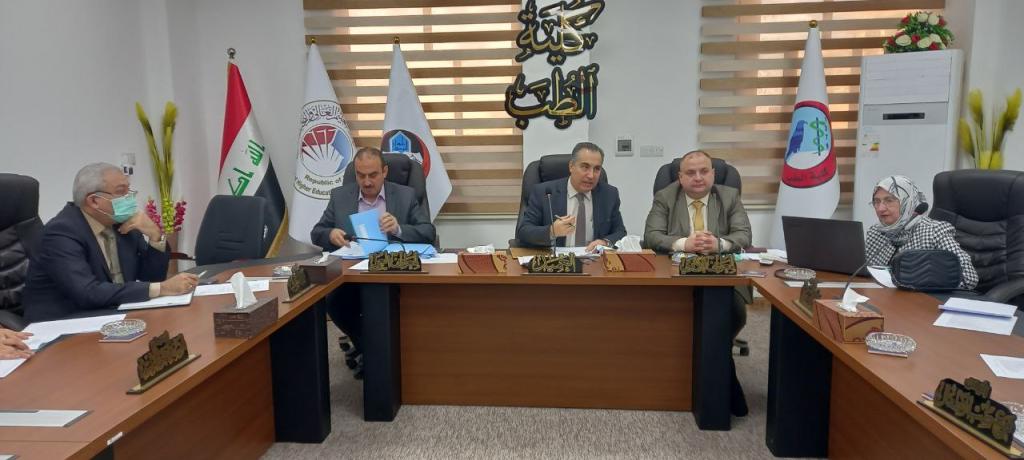 مجلس كلية الطب يعقد الجلسة الخامسة للعام 2022-2023ترأس الأستاذ الدكتور باسل محمد نذير سعيد المحترم عميد الكلية اجتماع مجلس كلية الطب الخامس للعام الدراسي 2022-2023 وذلك يوم الاثنين الموافق 7/11/2022حضر المجلس الأستاذ المساعد الدكتور همام غانم زبير معاون العميد للشؤون العلمية ( امين المجلس ) والمدرس المساعد الدكتور كرم تراث توفيق اغا معاون العميد للشؤون الادارية وباقي اعضاء المجلس السادة رؤساء الفروع العلمية والسيد مسجل الكلية