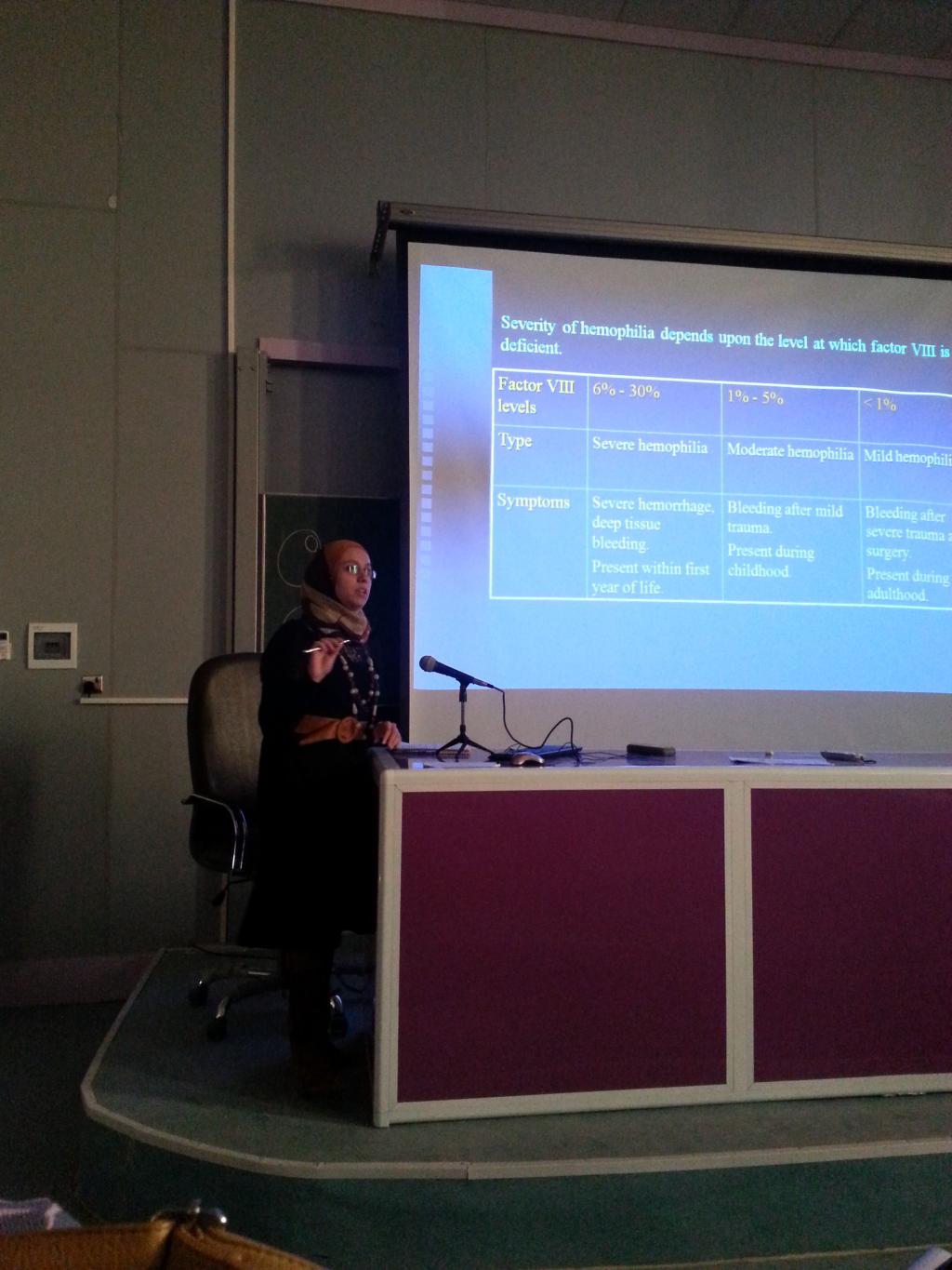 مجموعة من طلبة المرحلة الخامسة في كلية الطب المكونة من الطلبة ( سجى محمد عثمان النعيمي ، نور احمد محمد ، نور احمد يوسف ، يوسف محمد ) تقدم حلقة دراسية بعنوان Bleeding Disorders باشراف دكتور مازن فوزي رئيس فرع طب الاطفال في يوم الثلاثاء المصادف 2013/3/12 وكانت الحلقة مميزة وغنية بالمادة العلمية المهمة في المجال الطبي ، وللاطلاع على المادة العلمية للسيمنار زيارة الرابط http://medicinemosul.uomosul.edu.iq/page.php?details=363