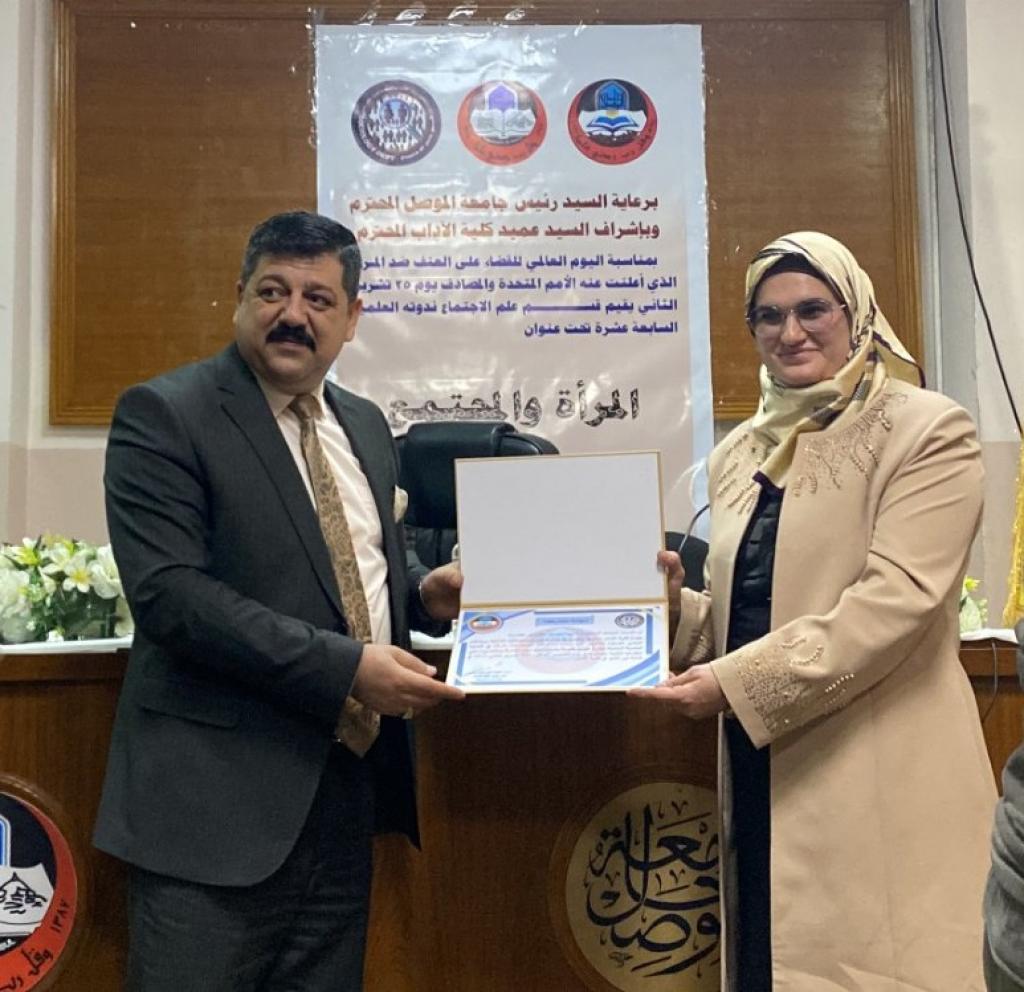مسؤولة شعبة البعثات والعلاقات الثقافية كلية الطب جامعة الموصل تشترك في ندوة علمية عن المرأة والمجتمع